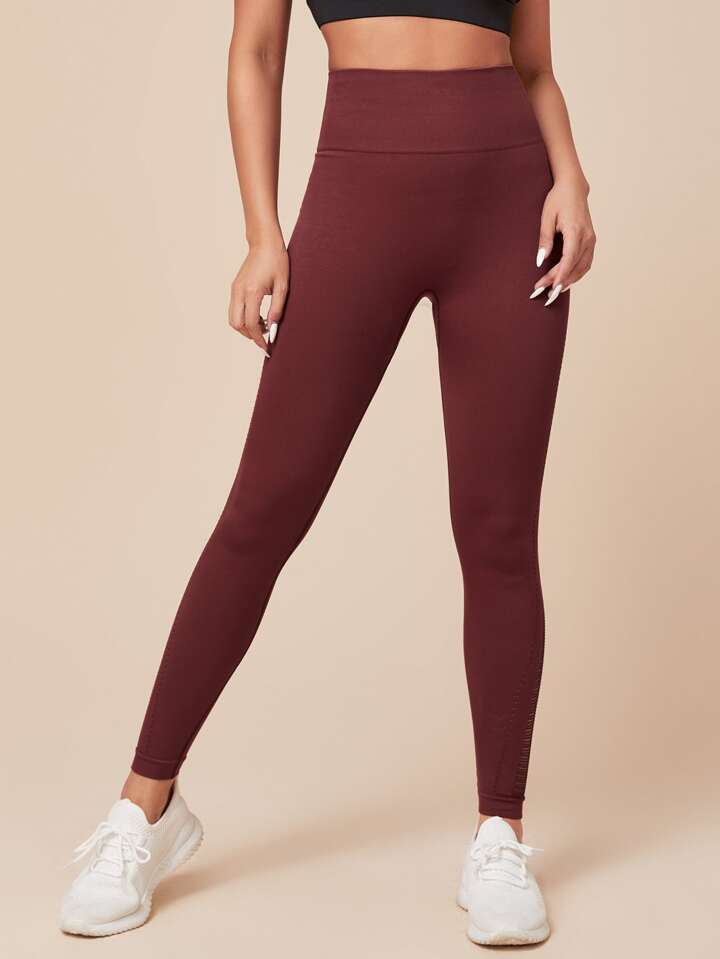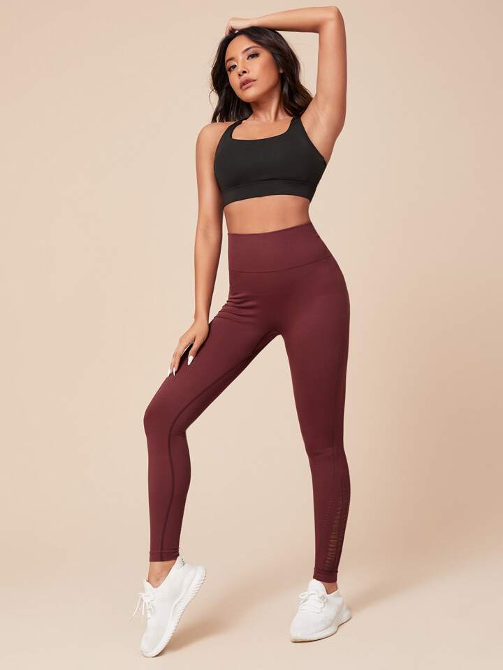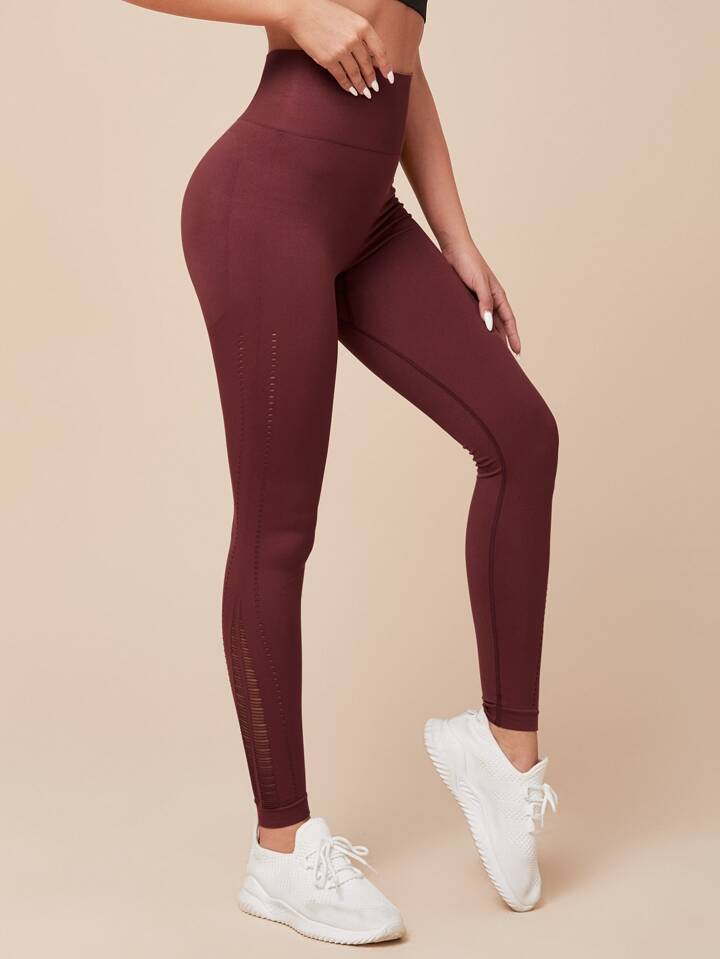 Yoga Leggings Seamless High Stretch Hollow Out Sports Leggings With Wide Waistband