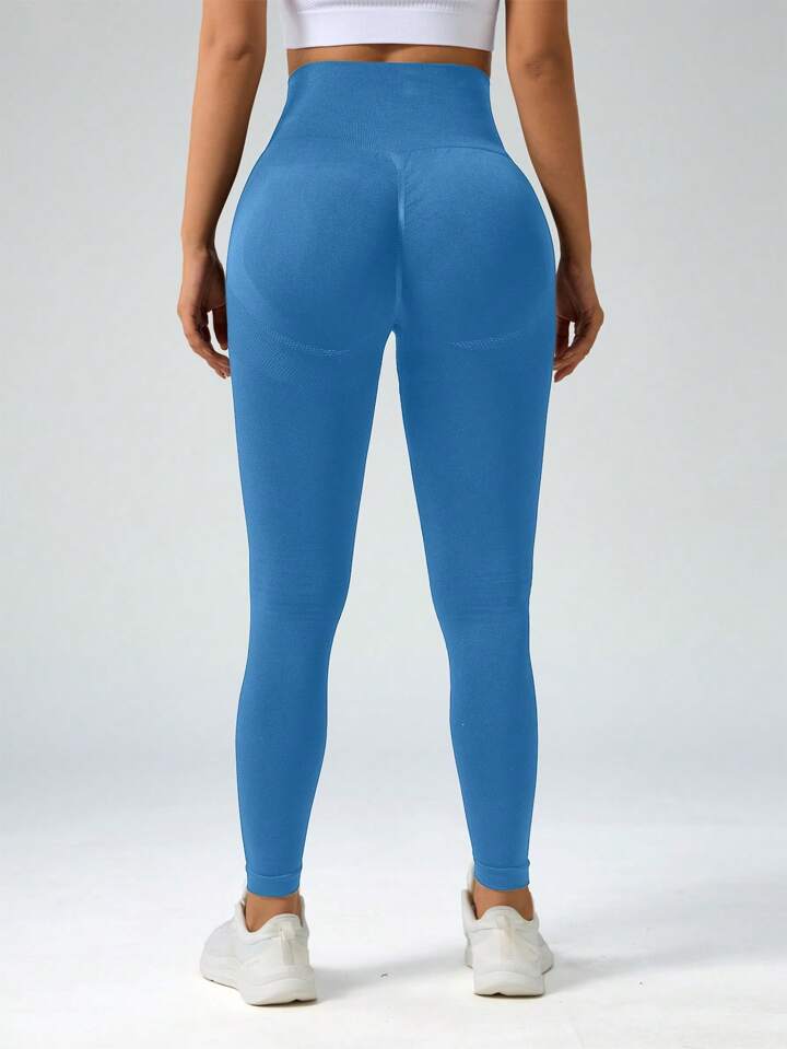Yoga Tights Seamless Scrunch Butt Tummy Control Compression Leggings With Wide Waistband