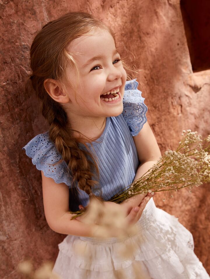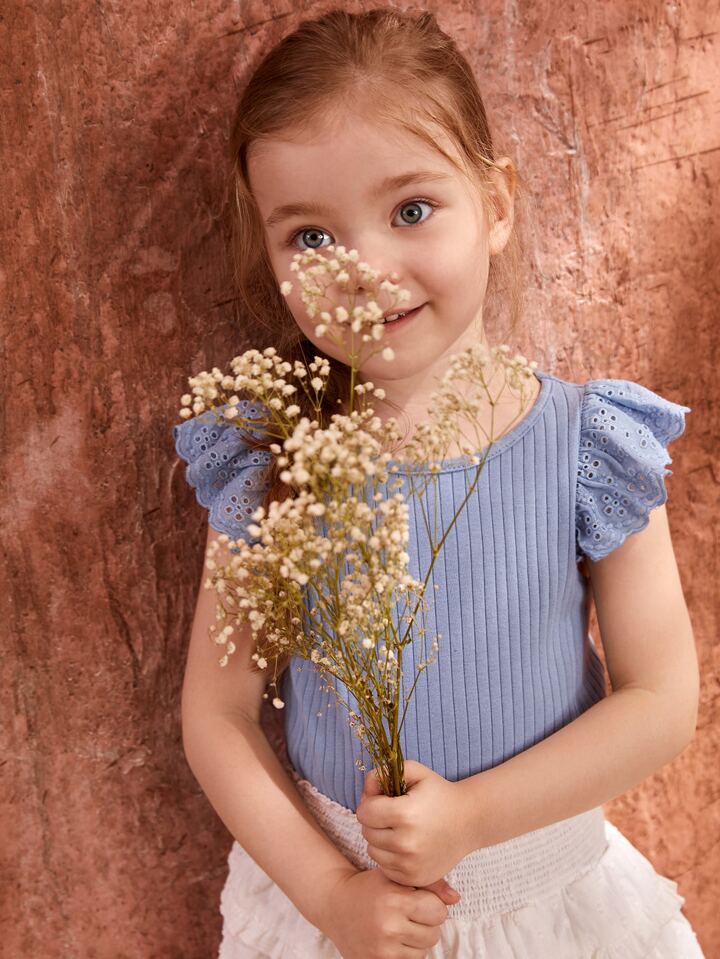 Young Girl Eyelet Embroidered Ruffle Trim Tank Top