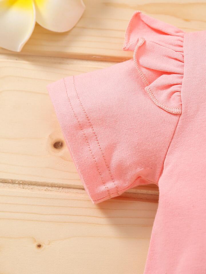 Young Girl Letter Graphic Tee & Floral Shorts & Headband