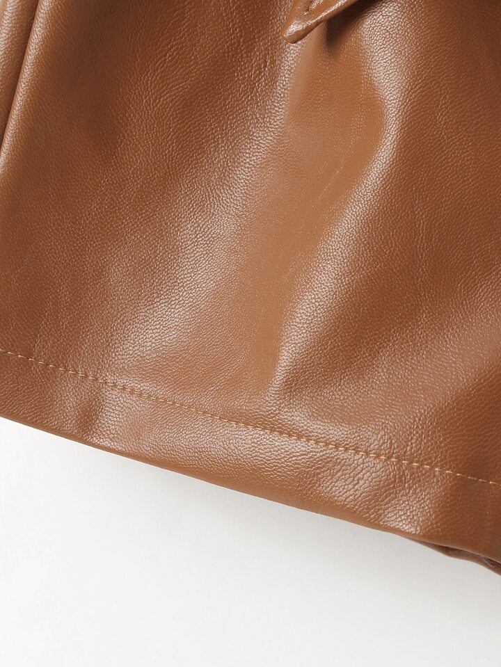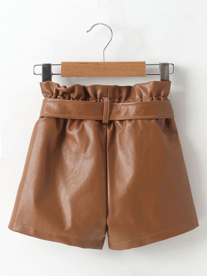 Young Girl PU Leather Belted Paper Bag Waist Shorts