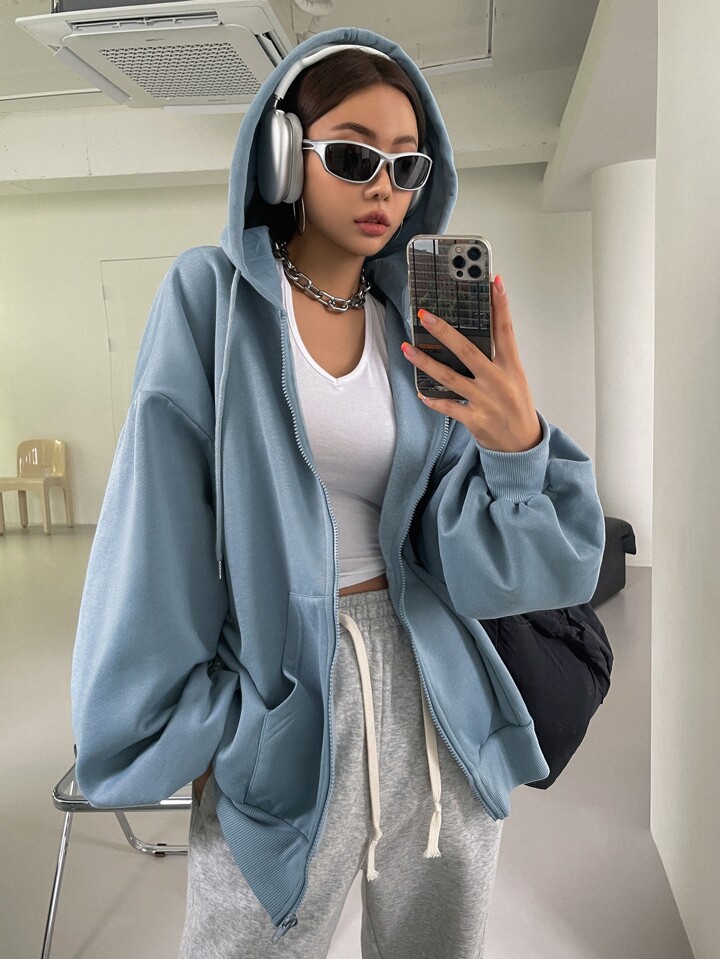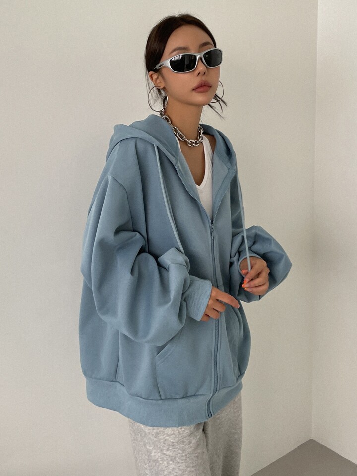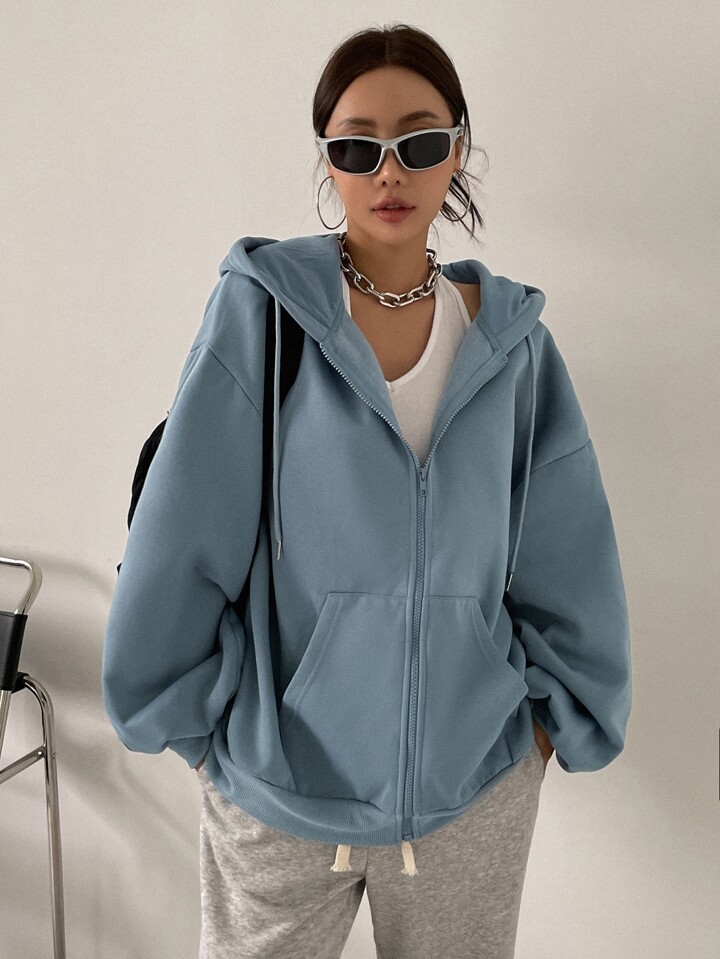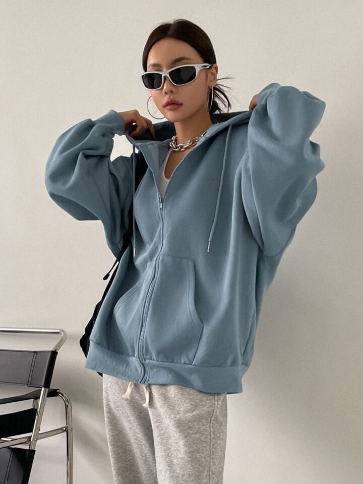 Zip Up Drop Shoulder Drawstring Thermal Lined Hoodie,Long Sleeve Tops,Fall Women Clothes Sweatshirt Jacket