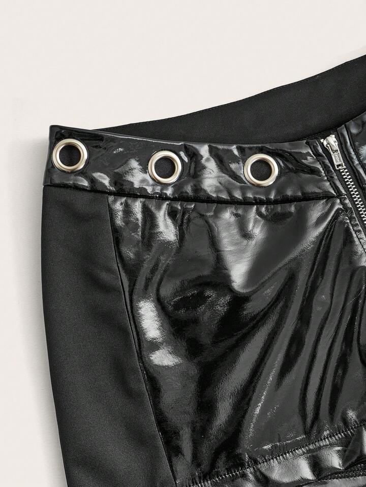 Zip Up PU Leather Shorts