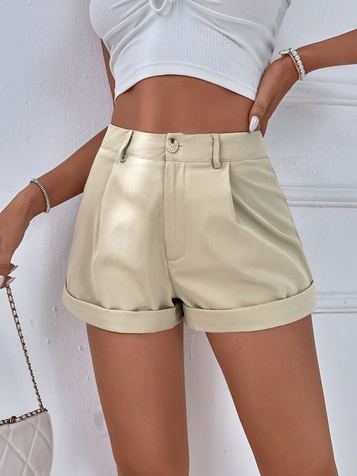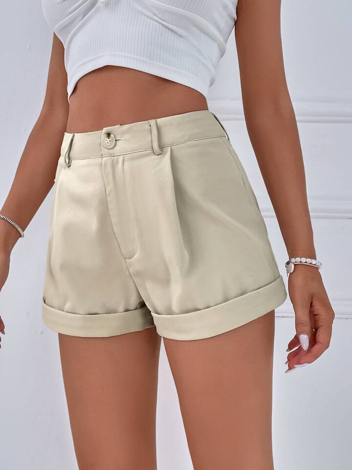 Zipper Fly Fold Pleated Cuffed Hem Shorts