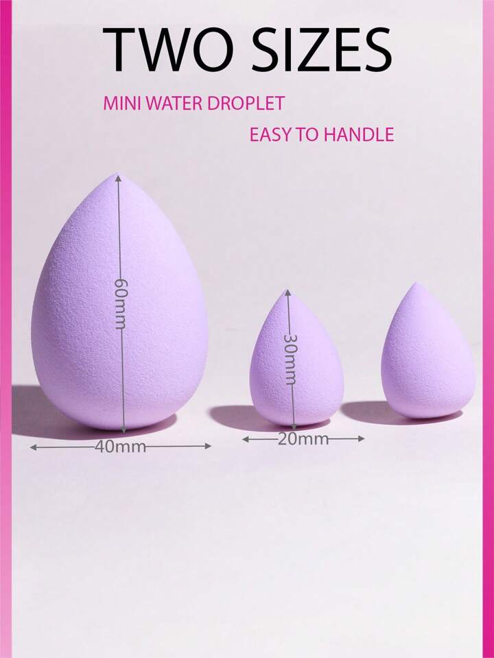 baopinger 3pcs Drop-Shaped Purple One Big Two Mini Water Drop Make-Up Sponge Set, Drop-Shaped Makeup Soft Foundation Powder Puff Concealer Flawless Blending Makeup Sponge
