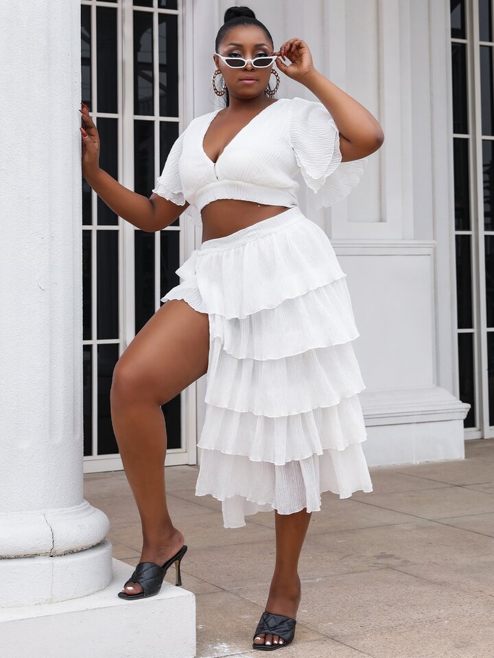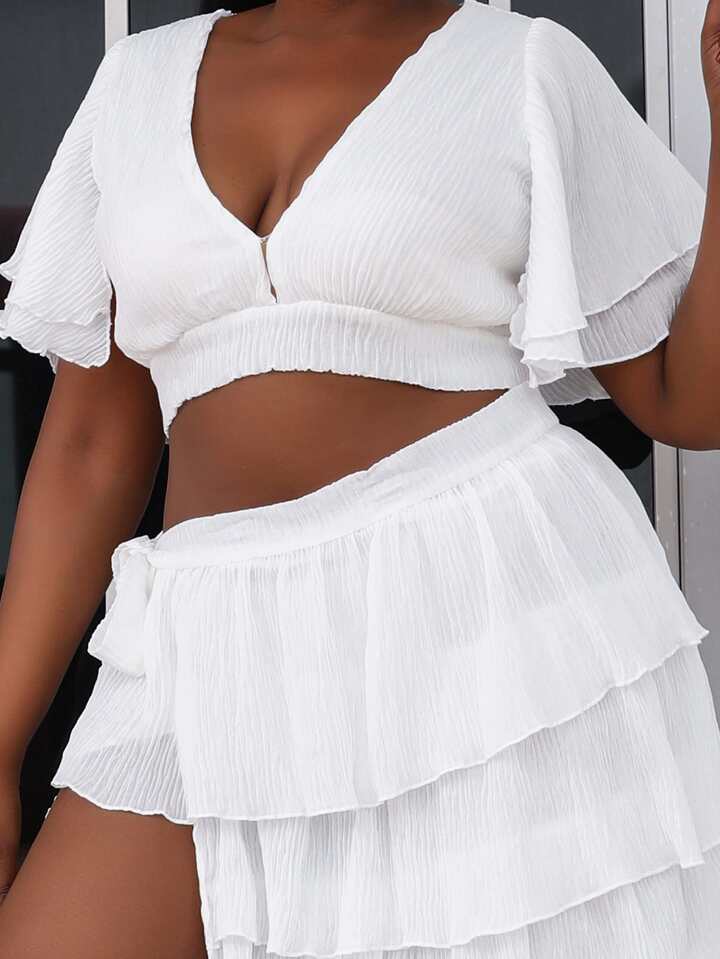 seomiscky Plus Flounce Sleeve Top & Layered Hem Skirt Set