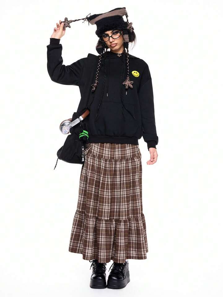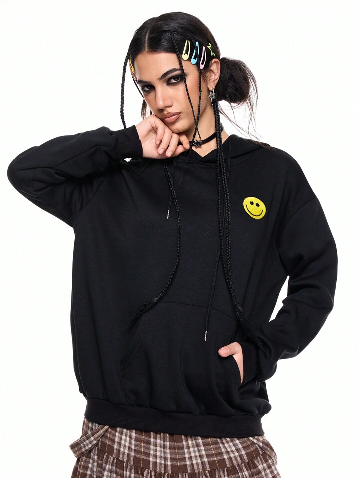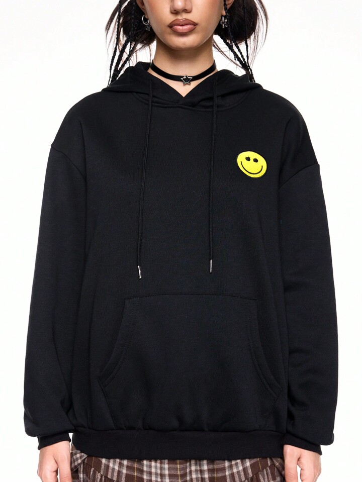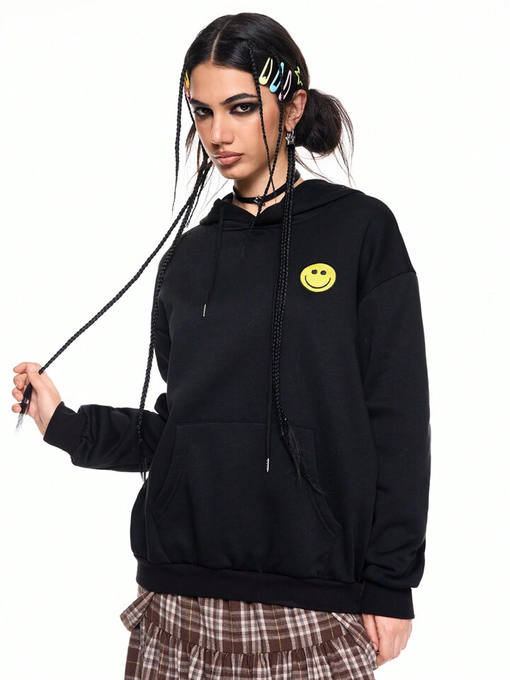 themindfulbutterflyy Streetwear College Style Slogan Print, & Floral Embroidery Mesh Hooded Sweatshirt