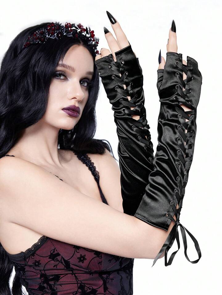 1 Paar dunkel-gothic Stil Fingerlose Handschuhe mit Schnürung, Punk Armmanschetten, geeignet für Party Cosplay Outfit