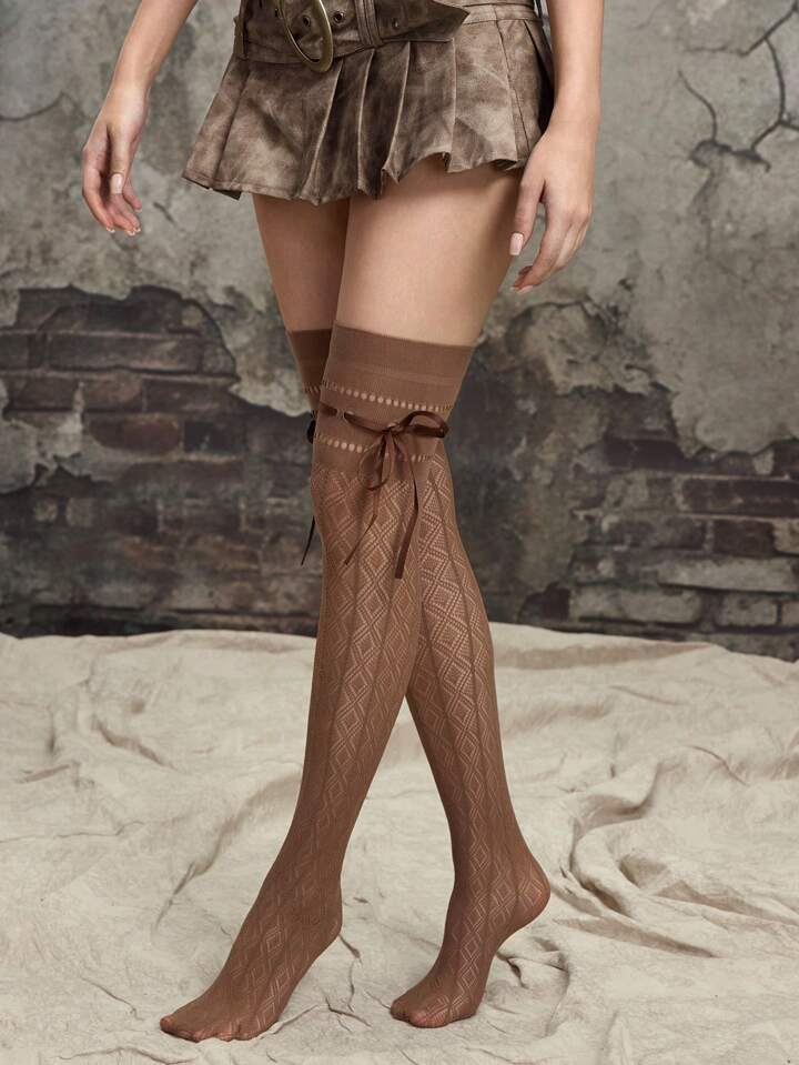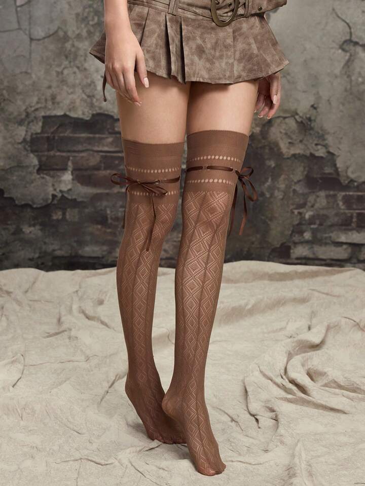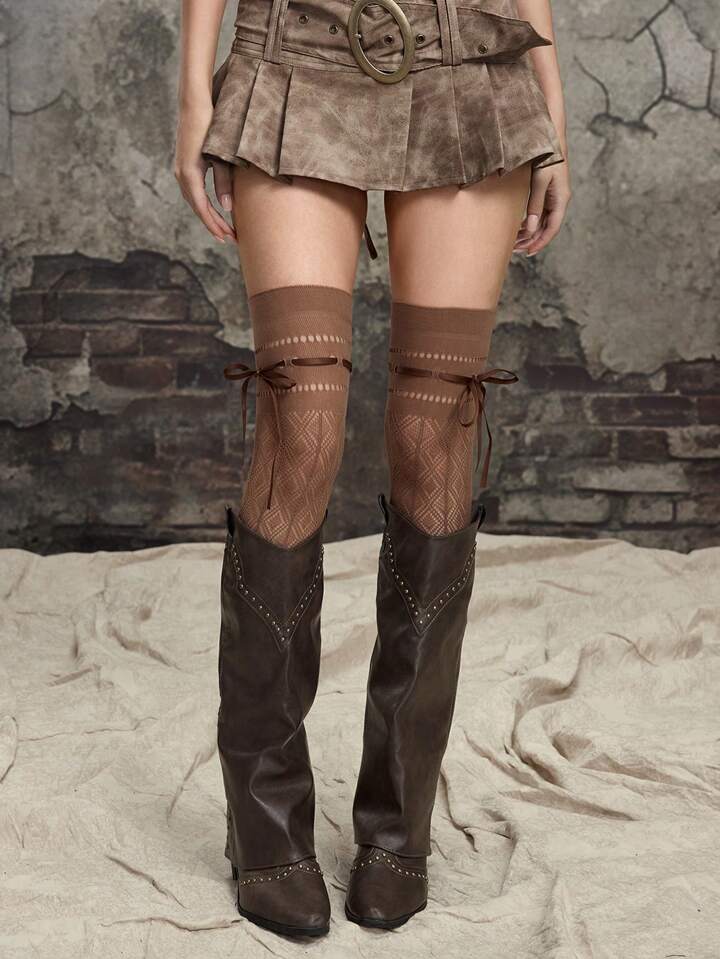 Hippie 1 Paar Damen sexy Spitzen Oberschenkel lange Socken mit Schleifen Dekor, rebellischer Stil