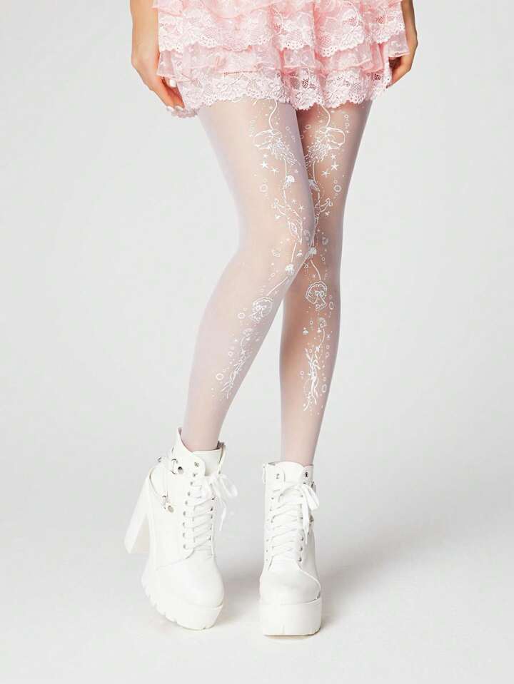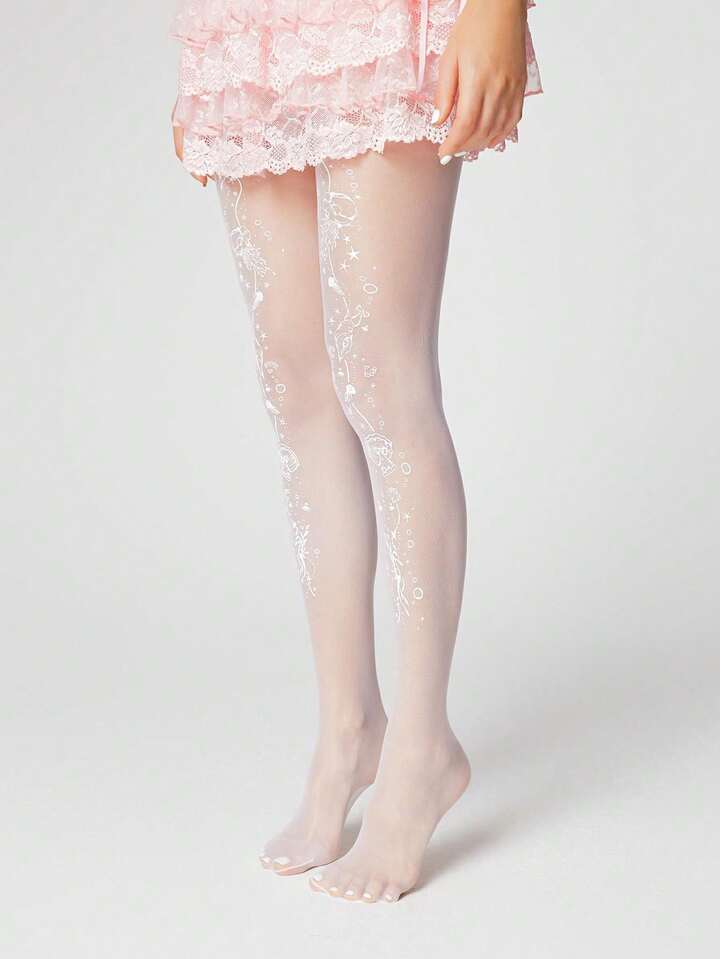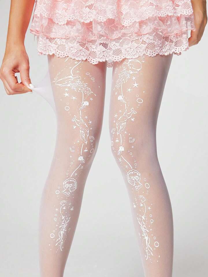 1 Paar Damen Kawaii weiße Ozean Herz bedruckte Strümpfe, das ganze Jahr über