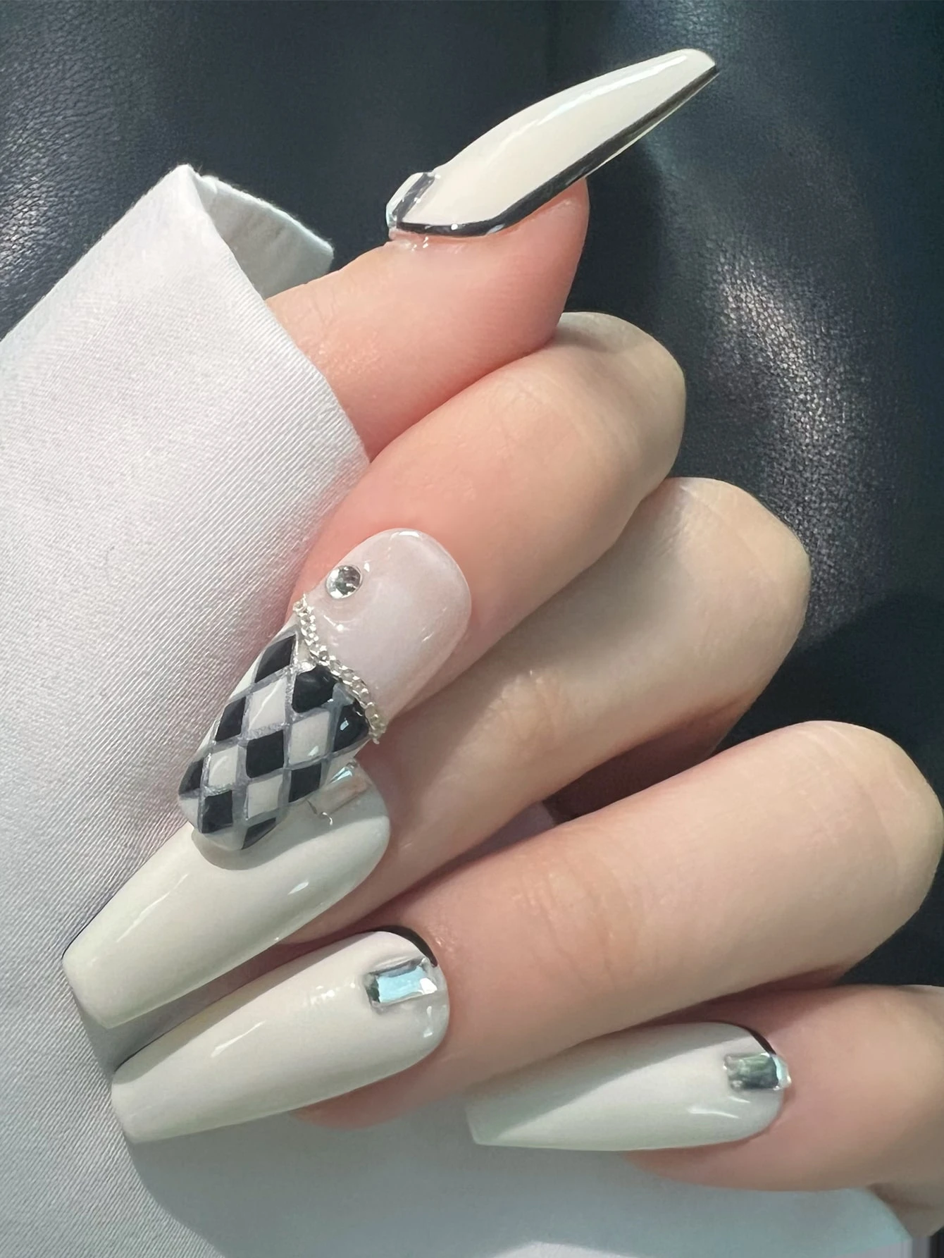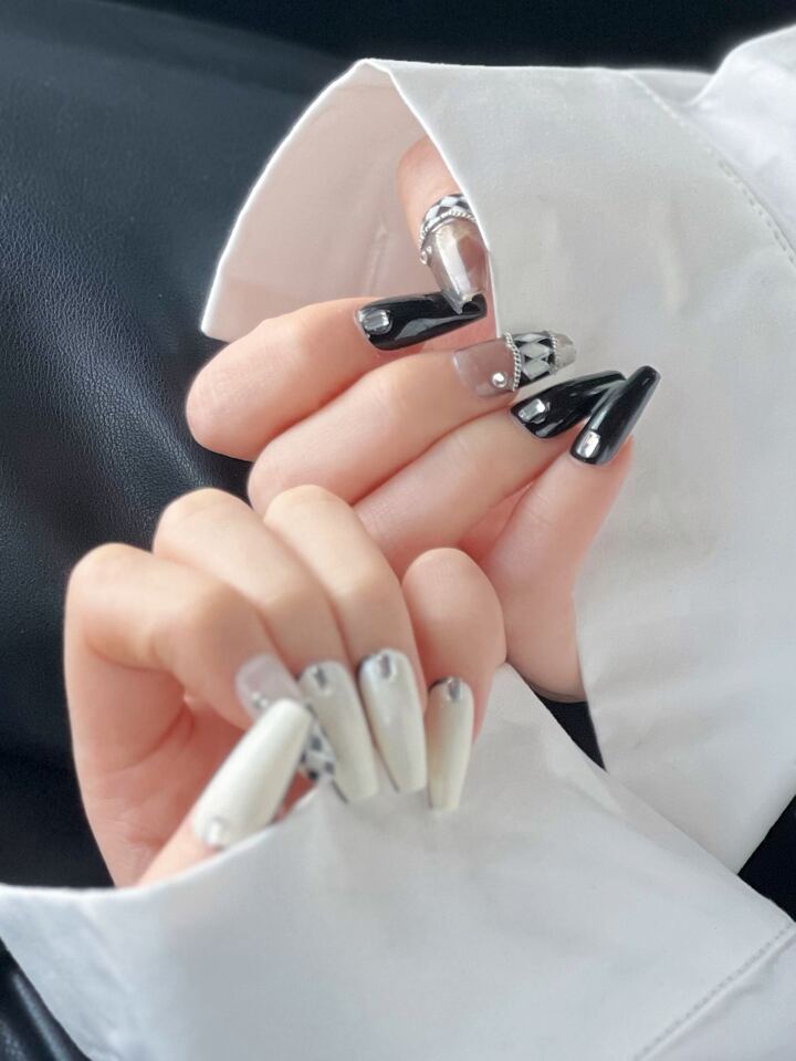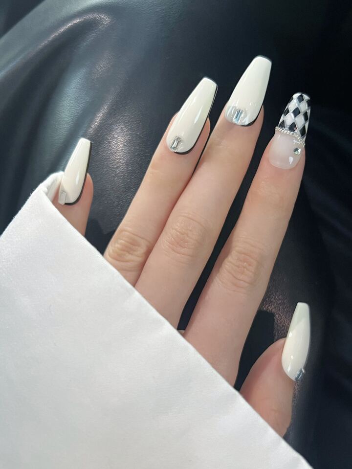10 Stücke Lang Sarg Plaid Kunstnägel mit & 1 Blatt Band,