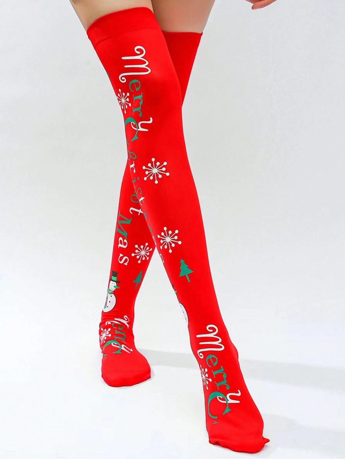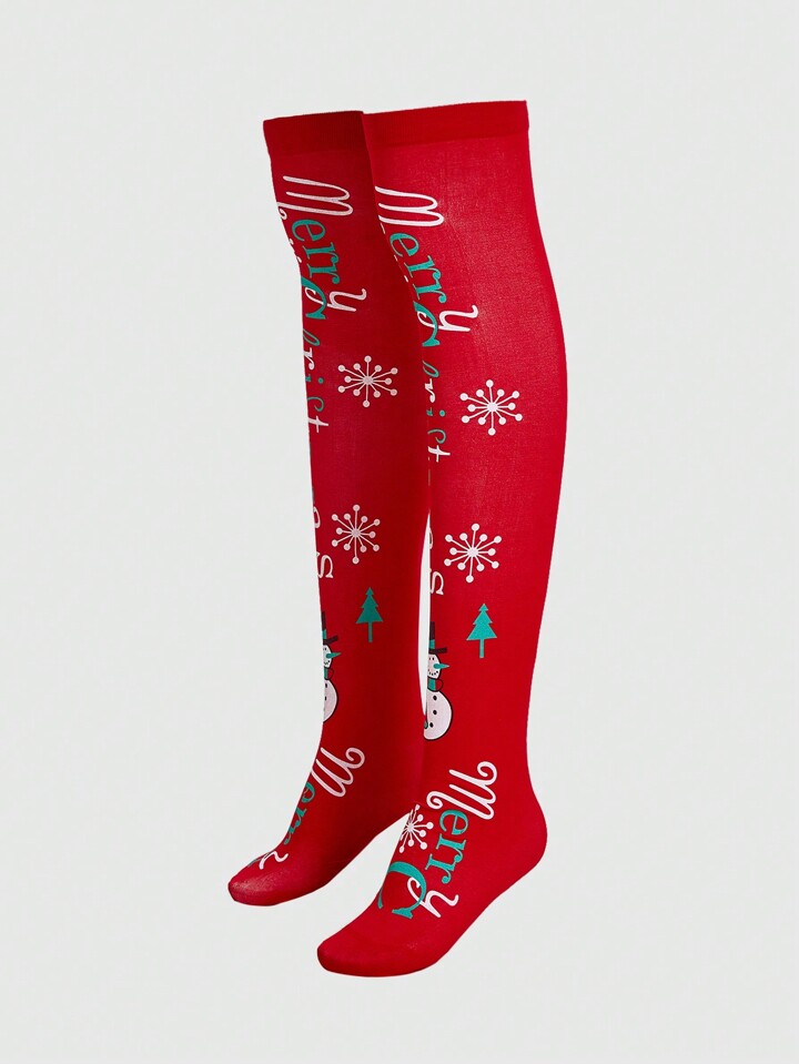 1 Paar Socken mit Weihnachten Buchstabe Gemustert Rot Überknie