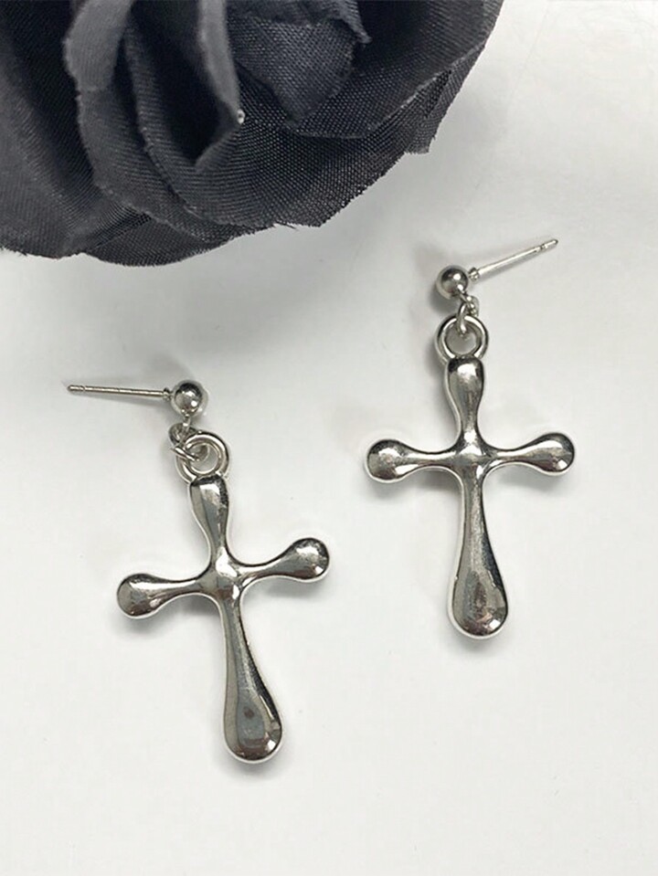 1 Paar Gothic Harajuku Stil Flüssigkeit 3D Silber Kreuz Ohrringe für Frauen