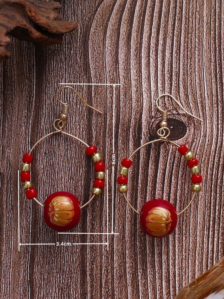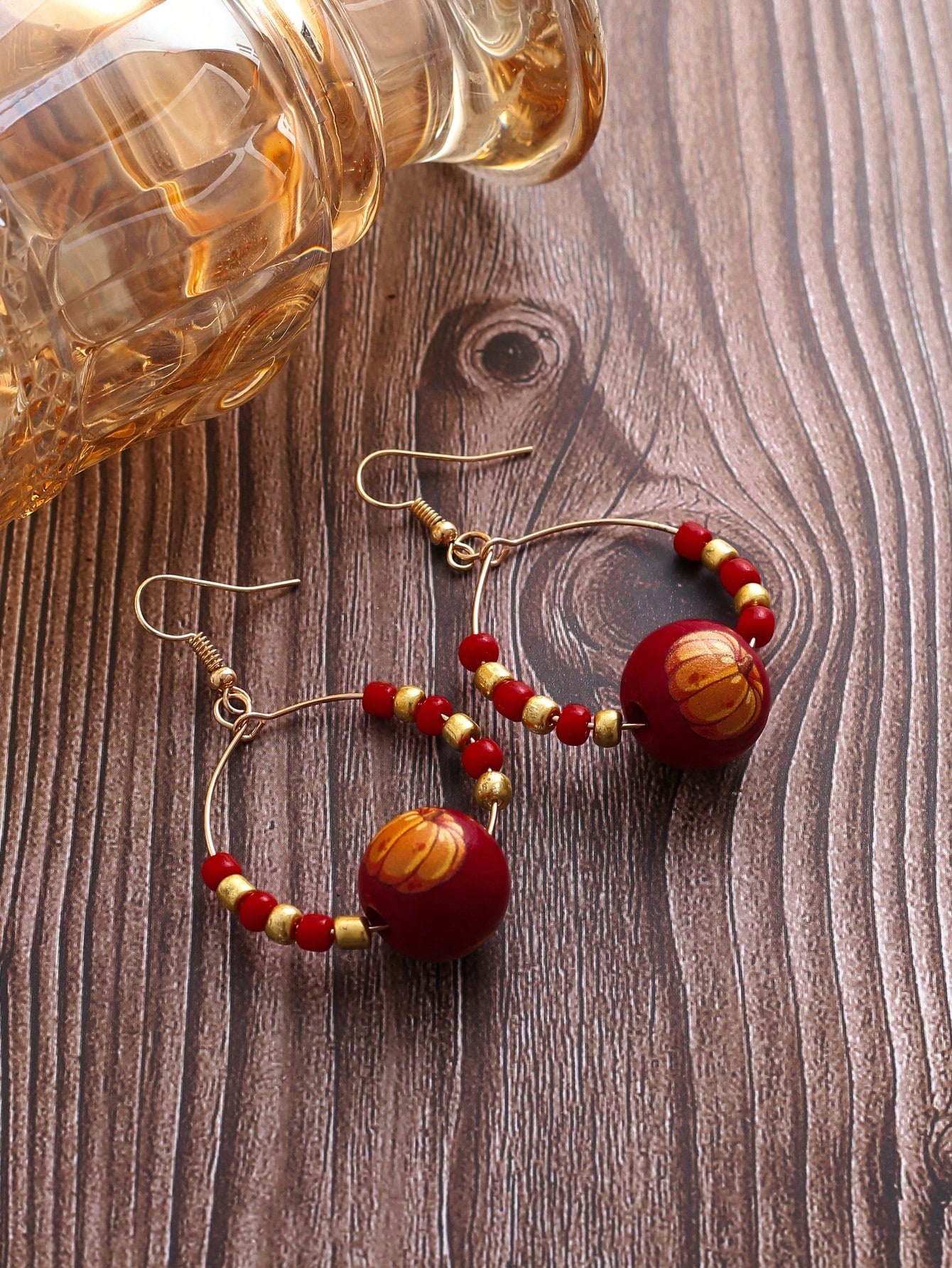 1 Paar Ohrringe Erntedankfest Kreativ Kürbis Muster, Holzperlen Rund