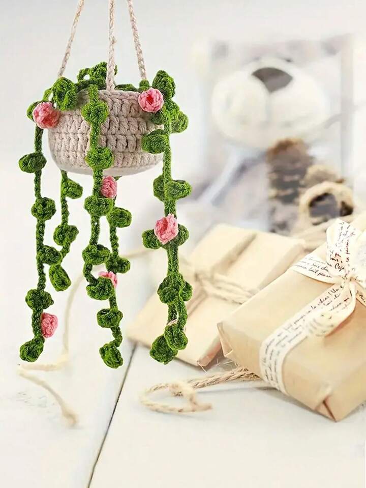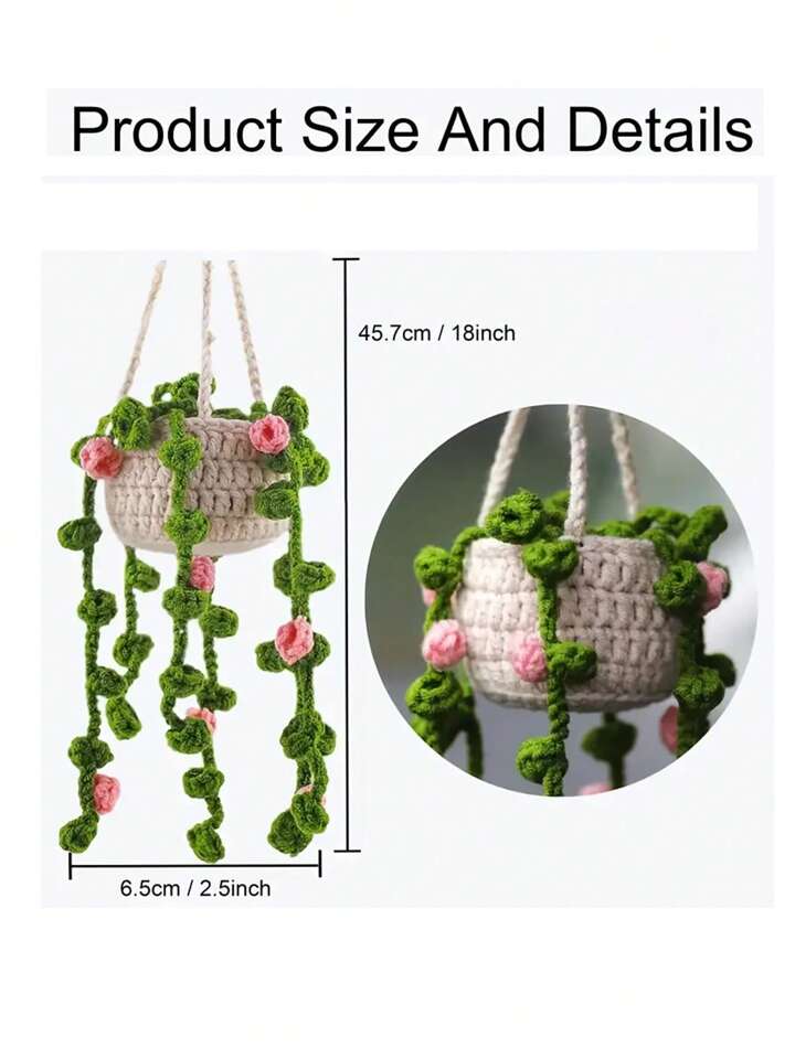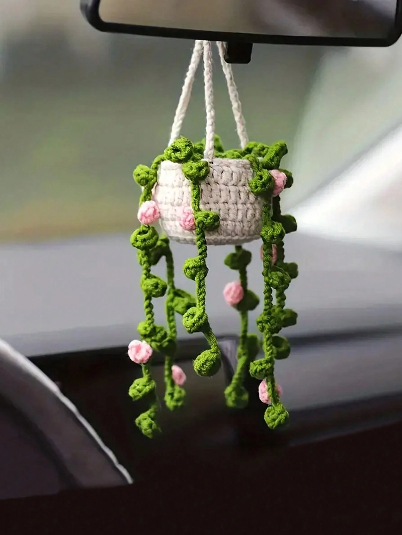 1 Stück Autoanhänger handgehäkelte süße Pflanze Auto-Rückspiegel kreativer Anhänger Autoschmuck