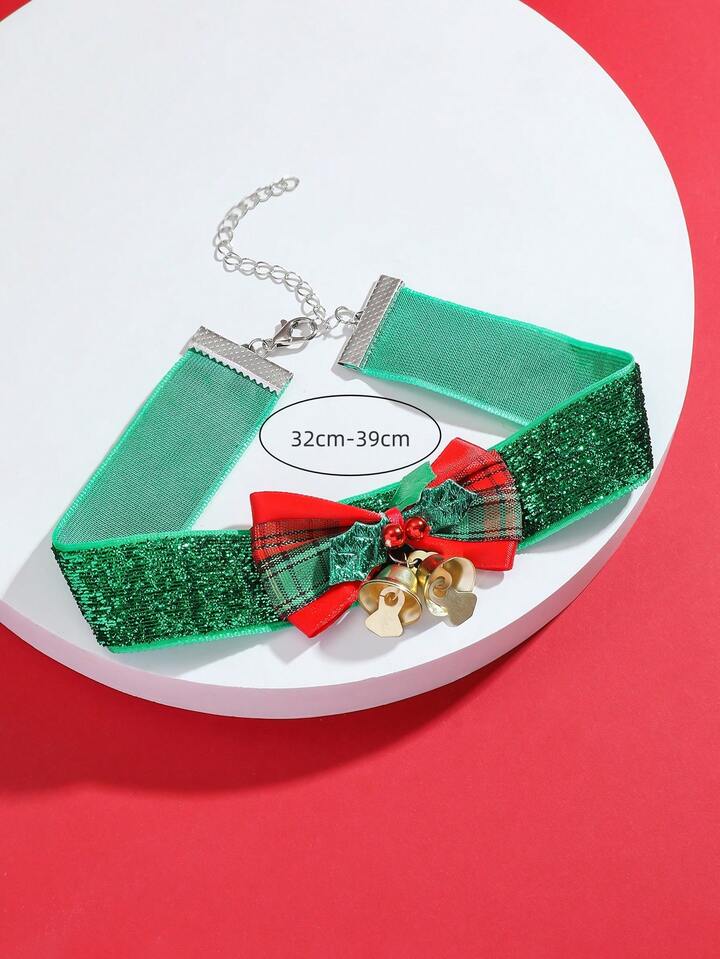 1 Stück Weihnachten modische süße karierte Stoffschleife, Blätter, Glocken, Bandhalskette
