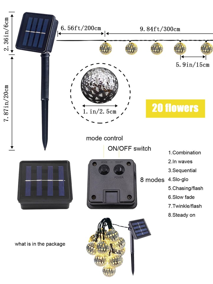 1 Stück Solar Lichterkette mit Farbblock, Ball Dekor