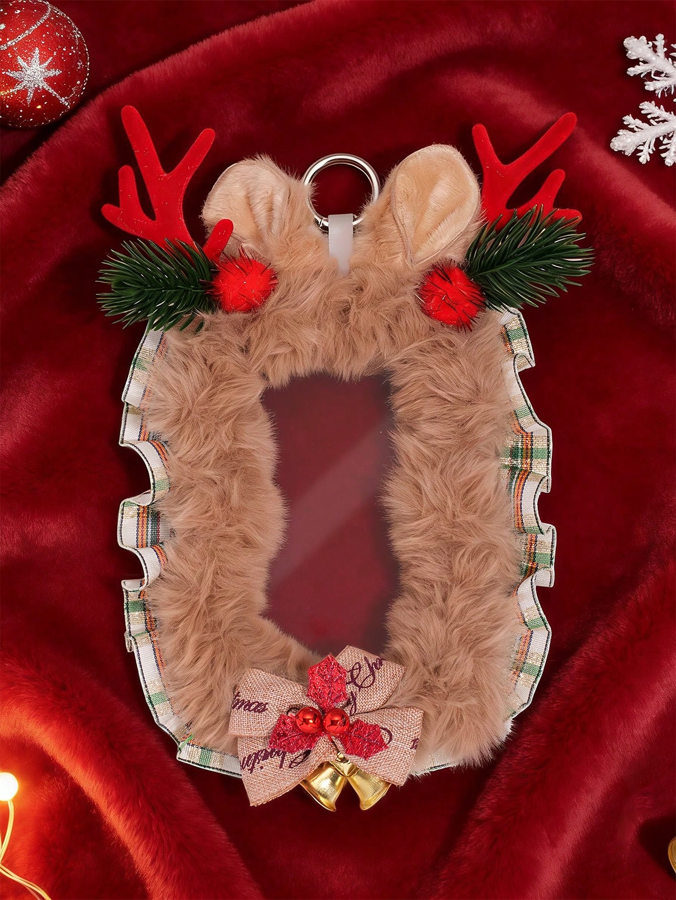 Kawaii 1 Stück süßer Weihnachts-Rentier Kartenhalter, Plüsch-Schleifen-Taschenanhänger, 3-Zoll-Dekorkartenatmosphäre für Herbst/Winter
