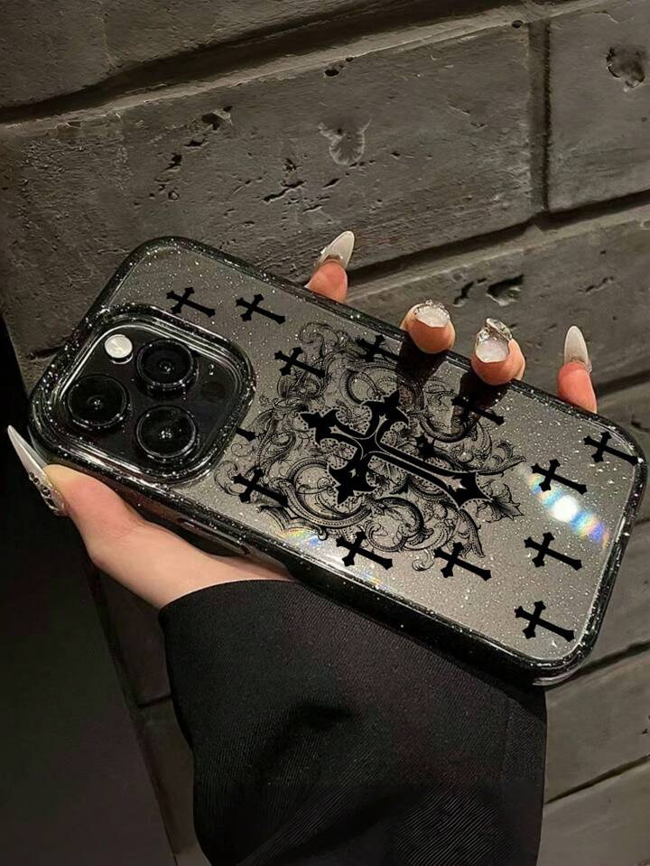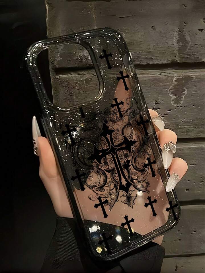 1 Stück Gothic-Stil Kreuz-Muster transparente Glitzer Handyhülle, Halloween
