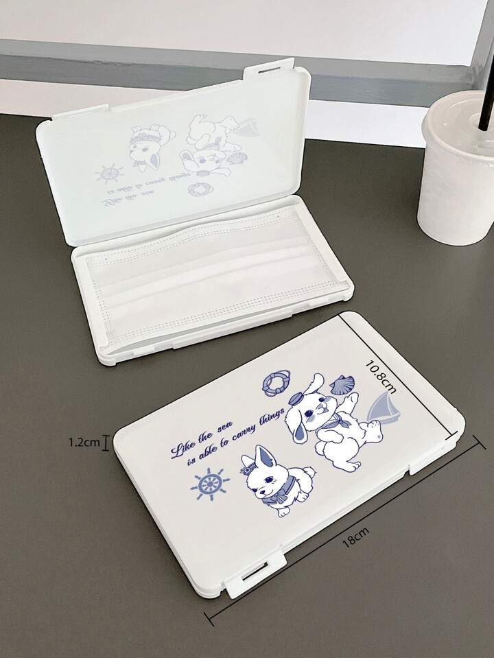 1 Stück Aufbewahrungsbox mit Kaninchen- und Slogan-Grafik-Gesichtsabdeckung, Cartoon-Kunststoff-Tierdruck-Aufbewahrungsbox für den Schreibtisch