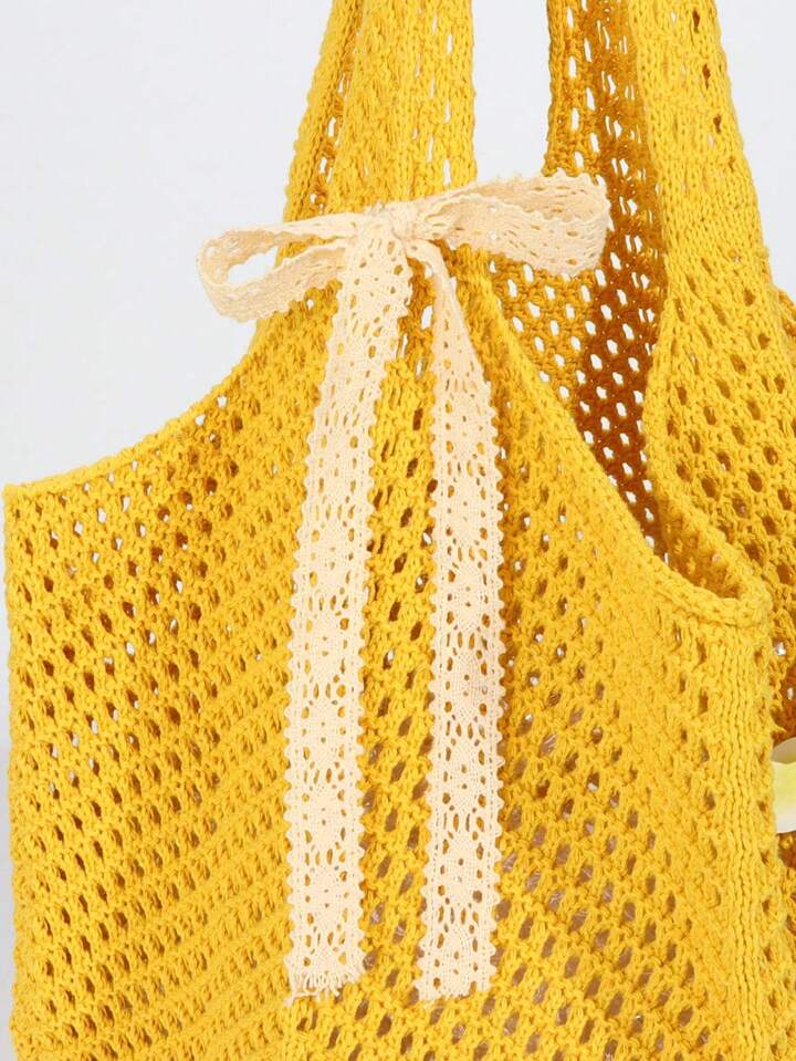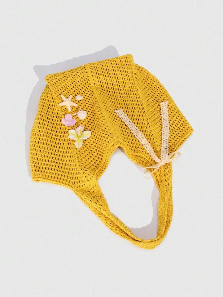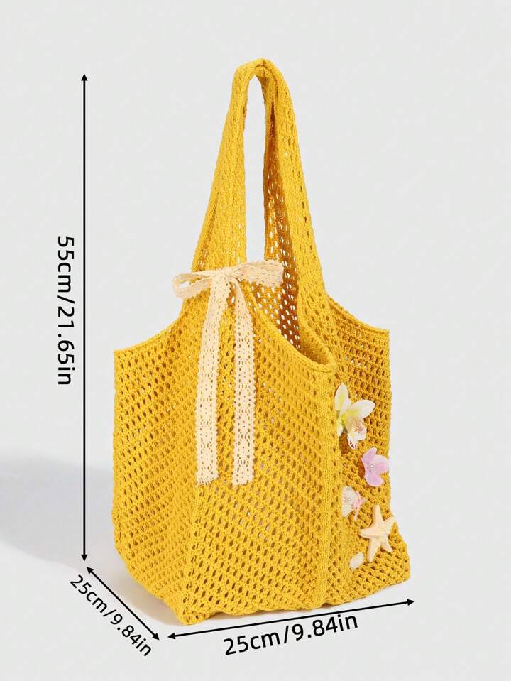 Fairycore 1 Stück Tropical Ocean Beach Urlaubsstil Cut Out gewebte gelbe Damen Schultertasche mit Muschel- und Seestern-Dekor, großes Fassungsvermögen