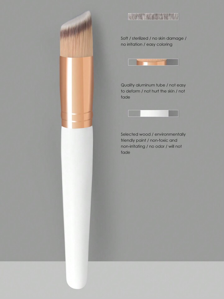 1 Stück weißgoldener, röhrenförmiger, schräger Foundation-Pinsel, Konturpinsel, Puderpinsel, Rougepinsel, Fächerpinsel, beliebtes dreifarbiges Haar
