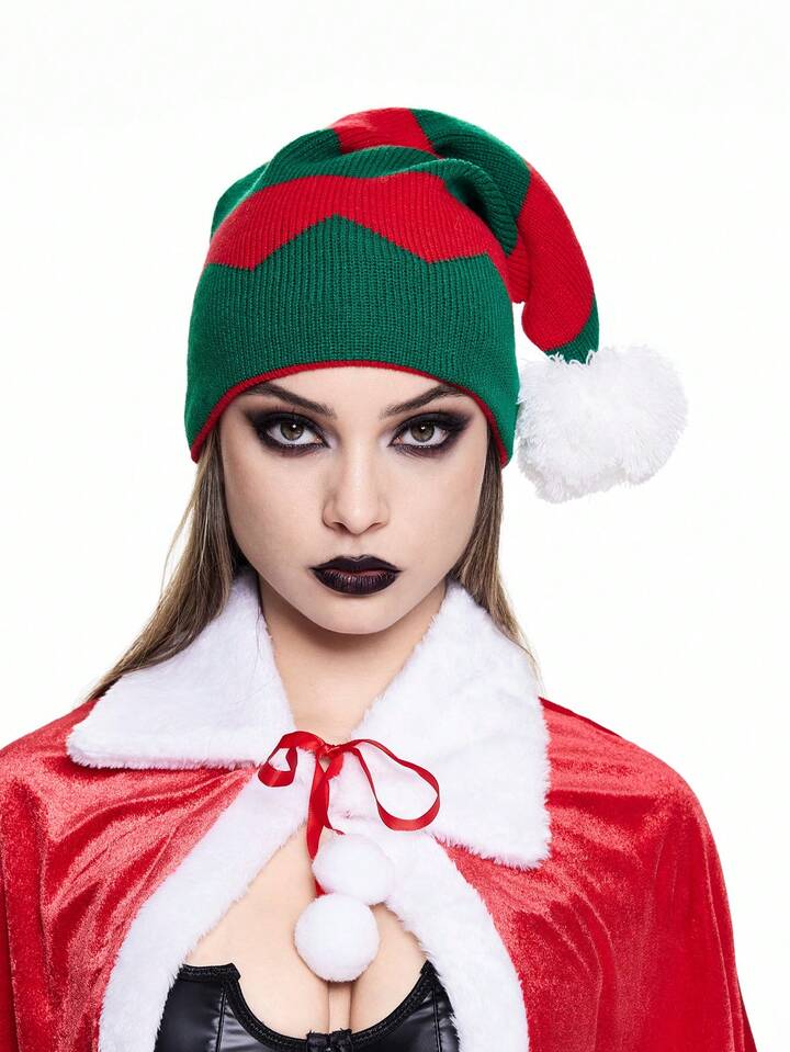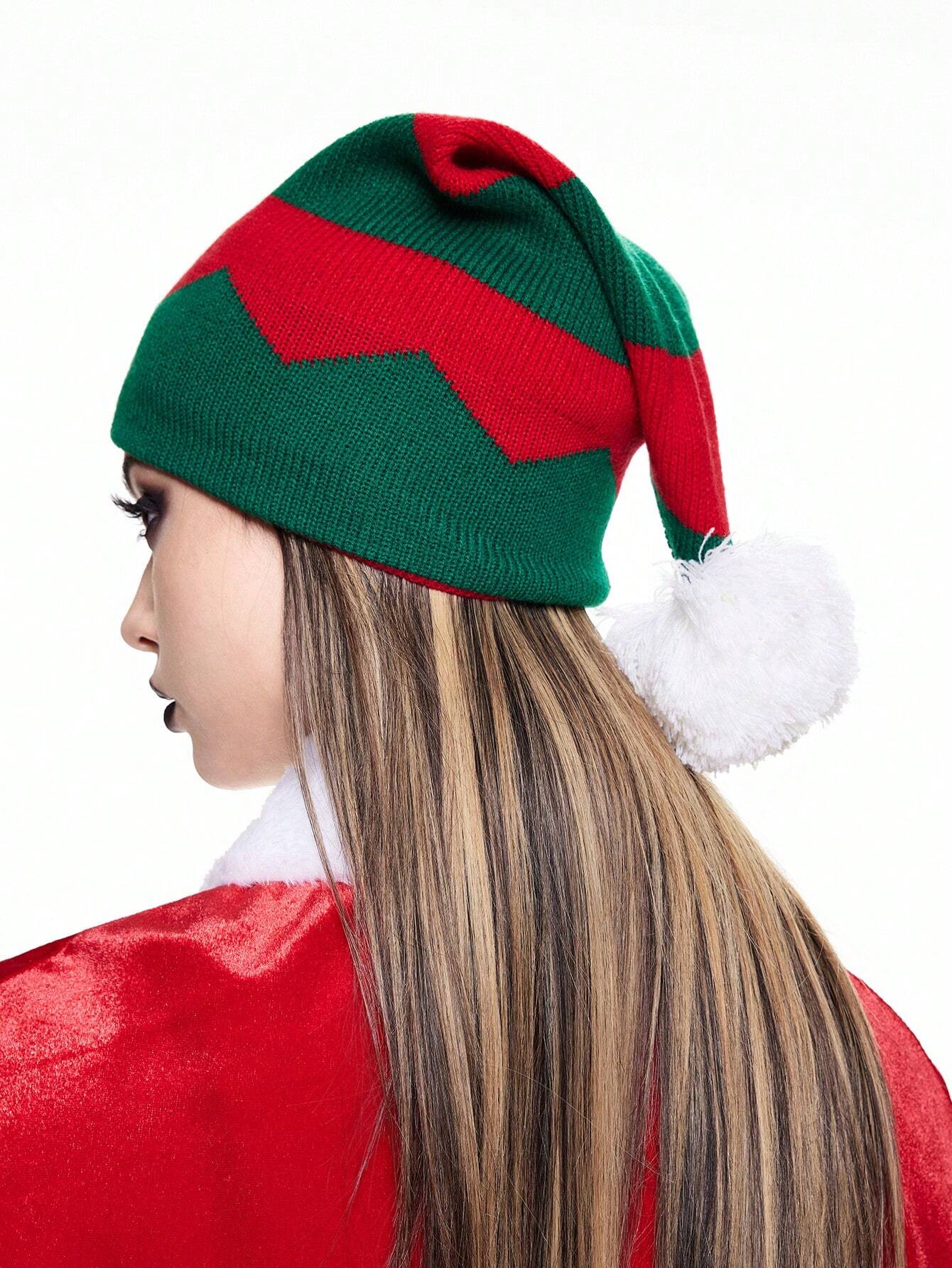 Goth 1 Stück Damen bunte gestreifte gestrickte Weihnachtsmütze, für Feiertage, Winter