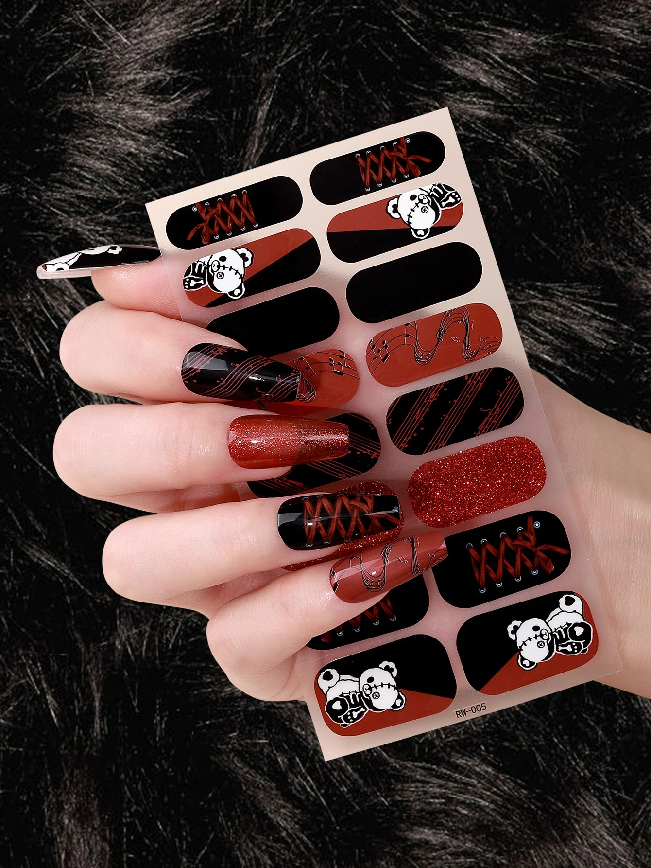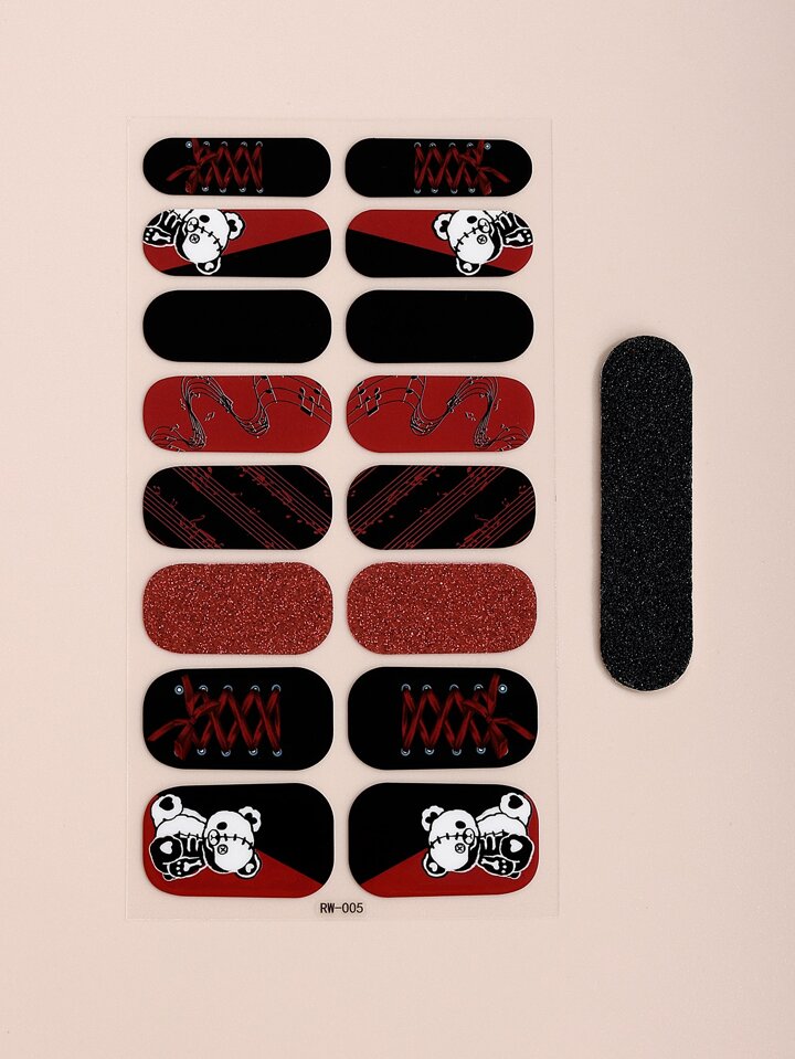 1 Blatt Nagelkunst Aufkleber mit Bär Muster, & 1 Stück Nagelfeile
