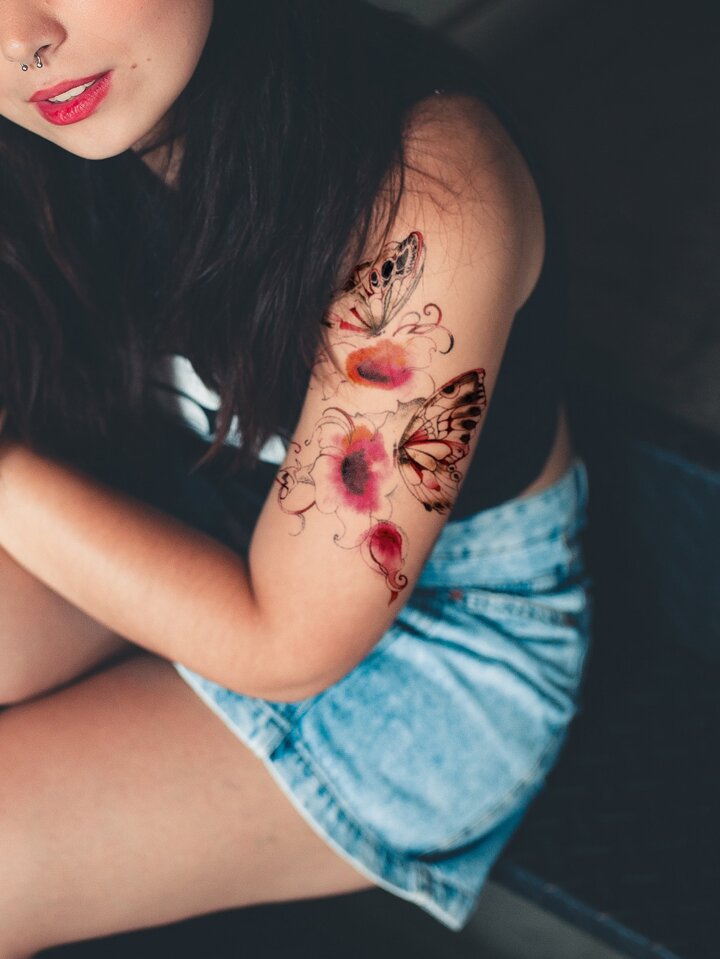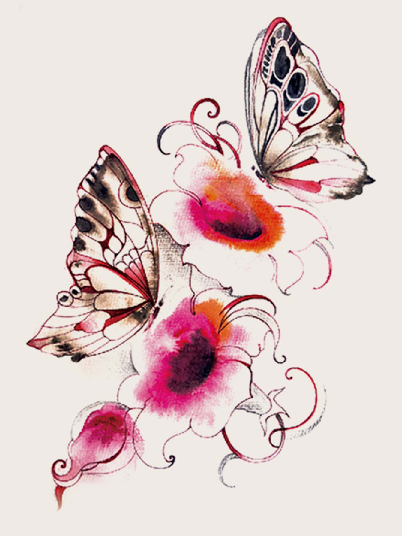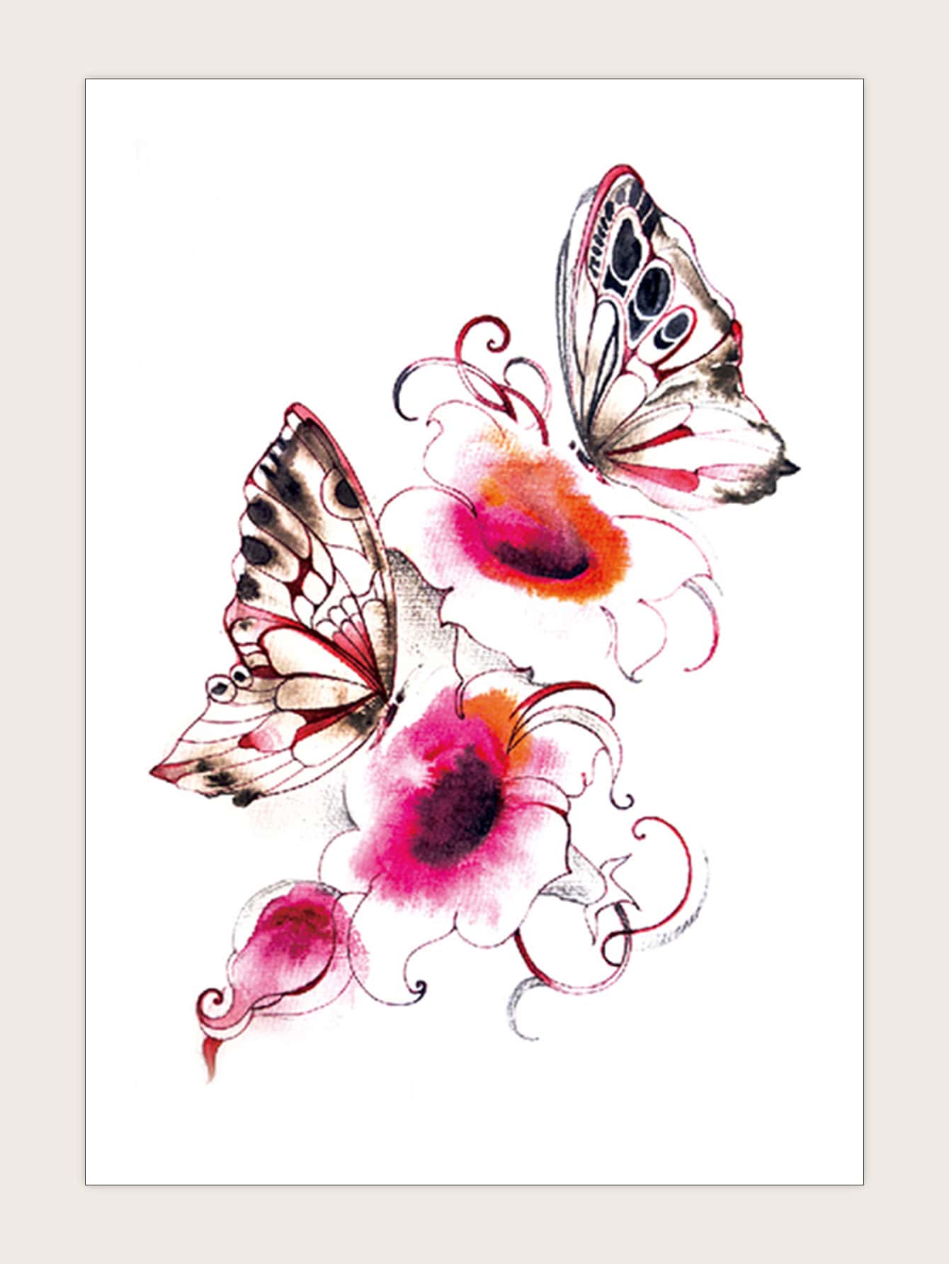 1 Blatt Tattoo Aufkleber mit Schmetterling & Blumen Muster