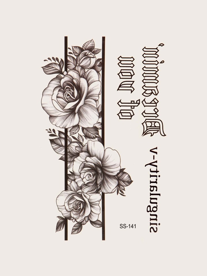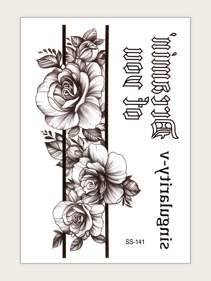 1 Blatt Tattoo Aufkleber mit Blume & Buchstabe Grafik