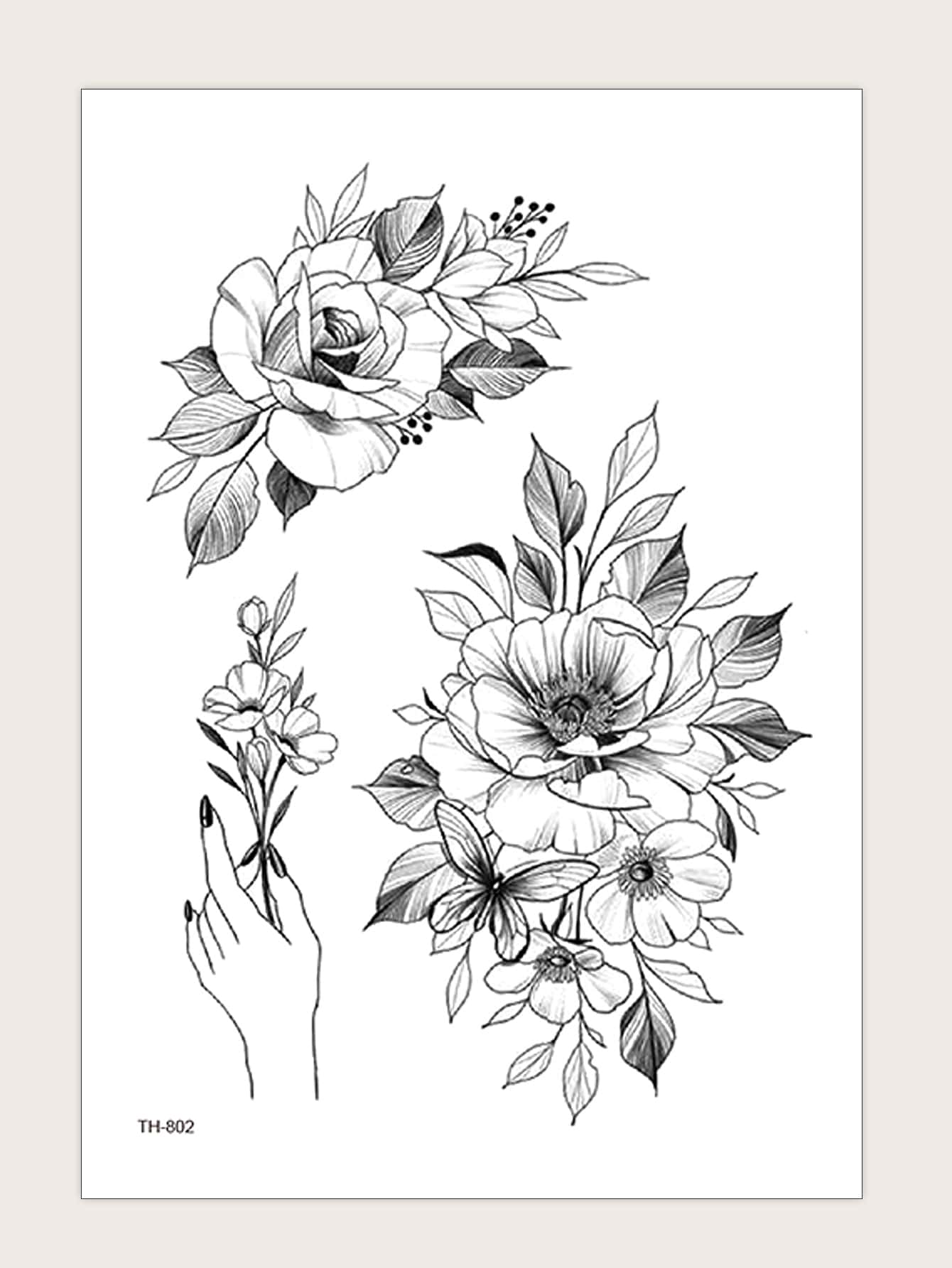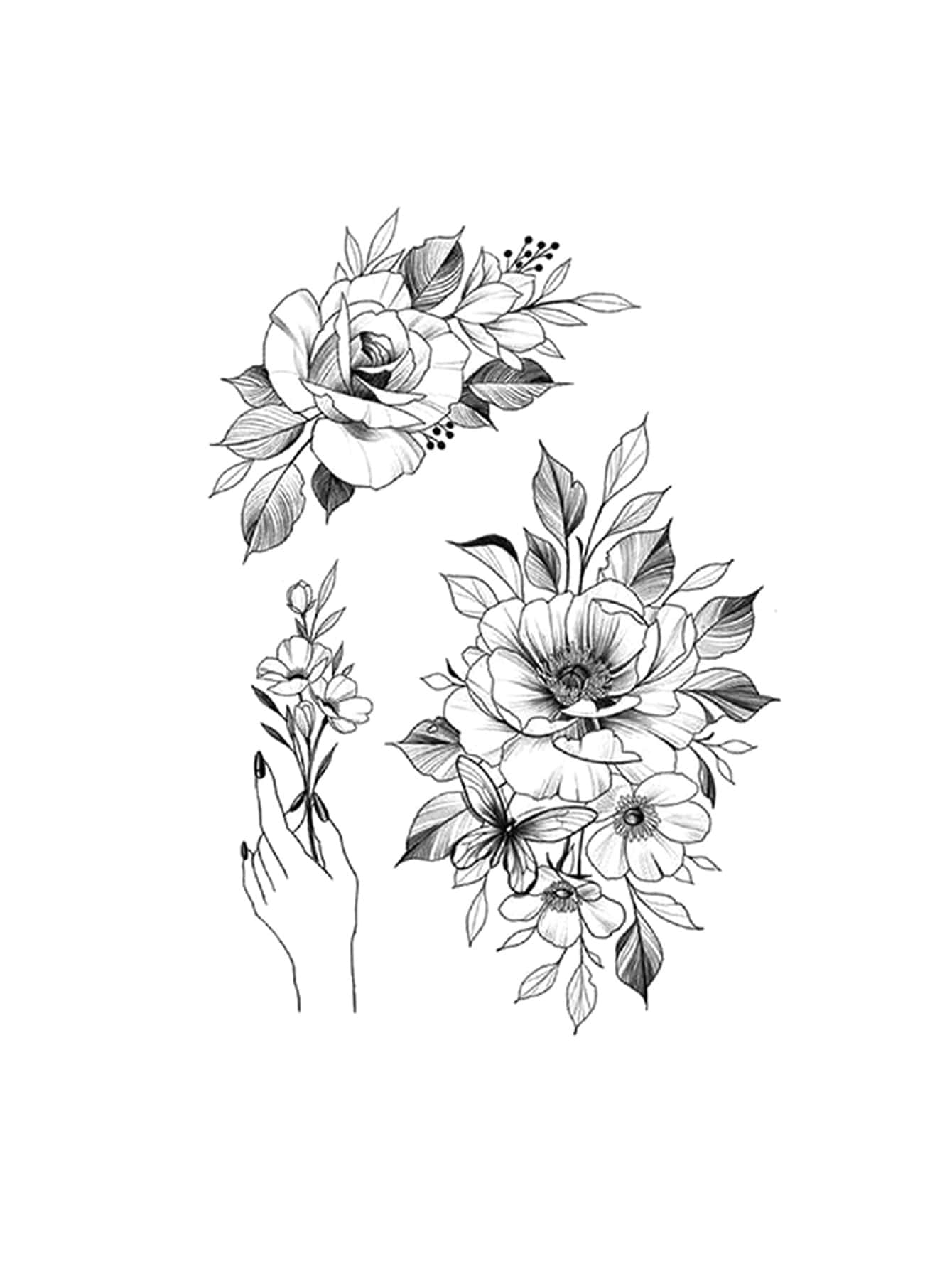 1 Blatt Blumenmuster Tattoo Aufkleber