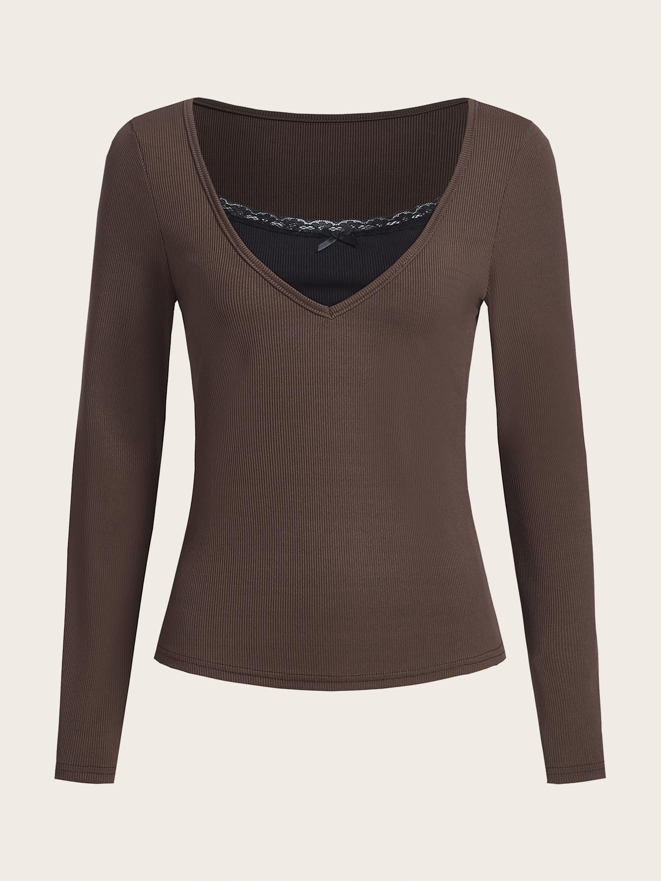 T-Shirt mit 2 in 1 Kontrast Spitzen