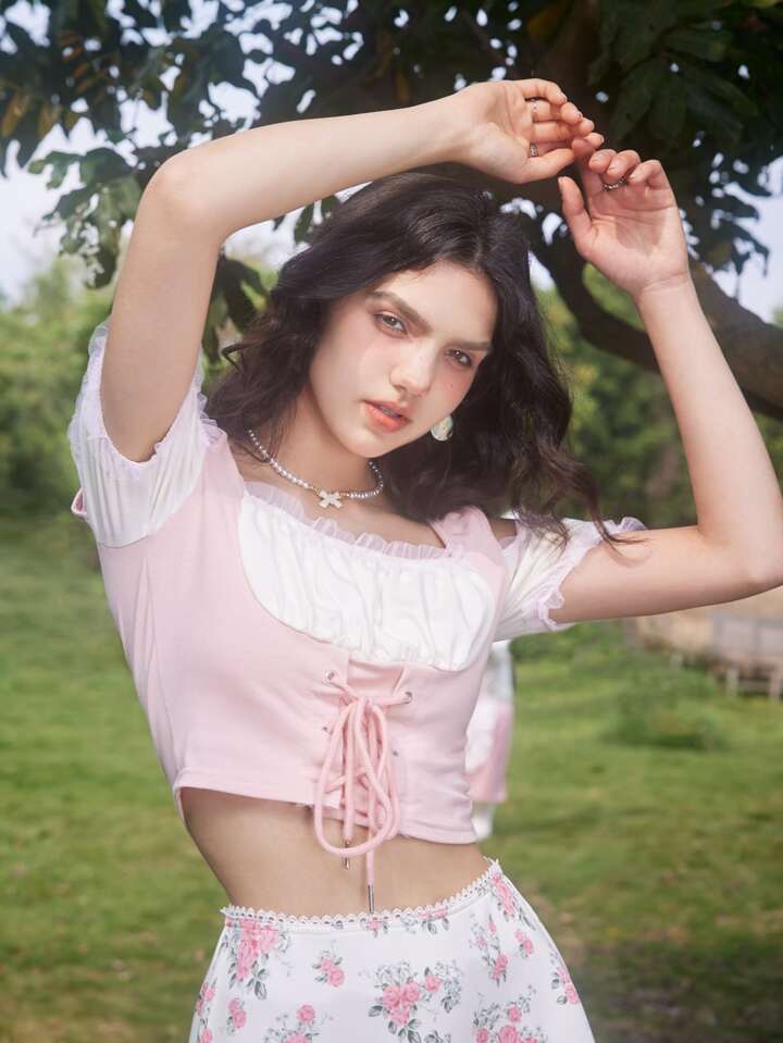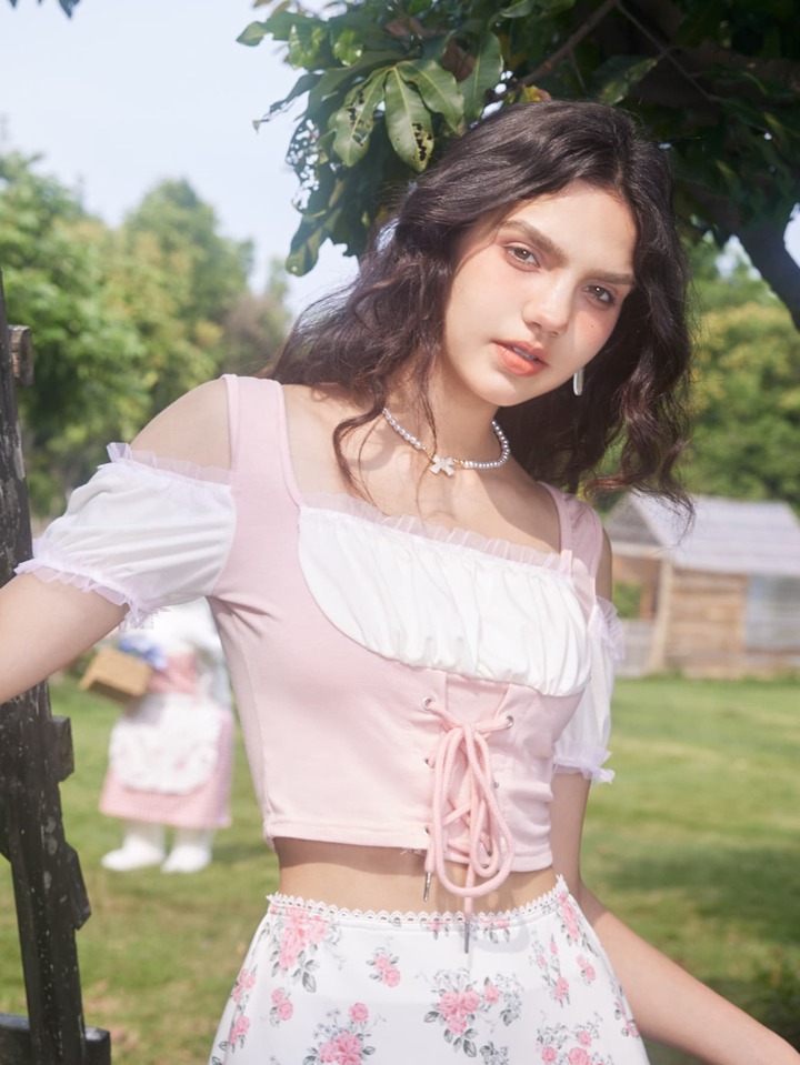2 in 1 schulterfreies Top mit Band