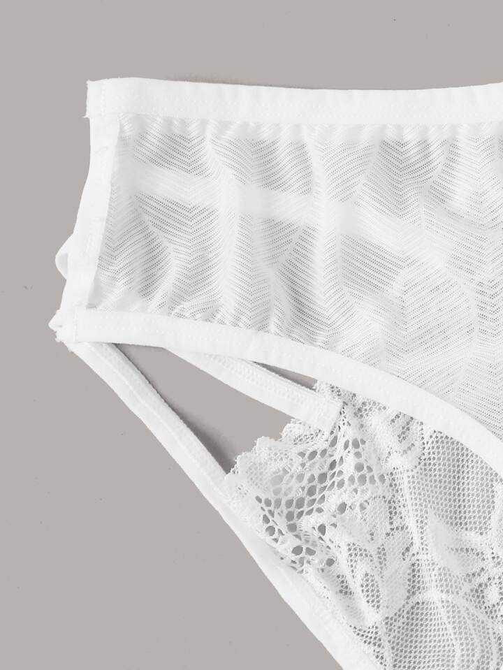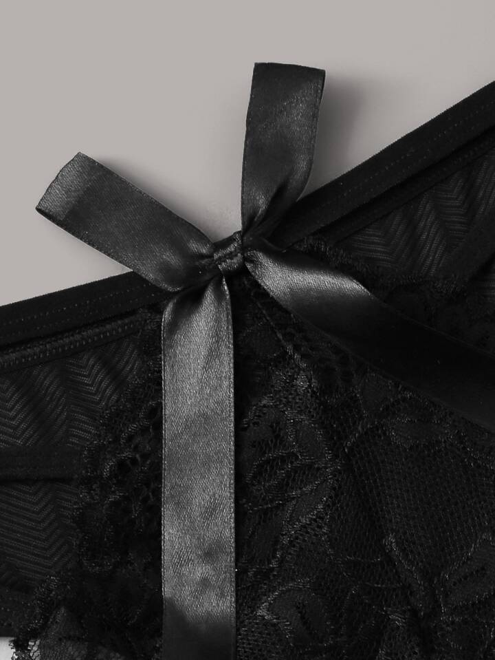 2 Sets florales Seidenhöschen-Set mit Spitzen-Geschirr