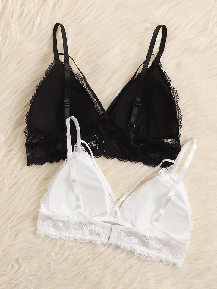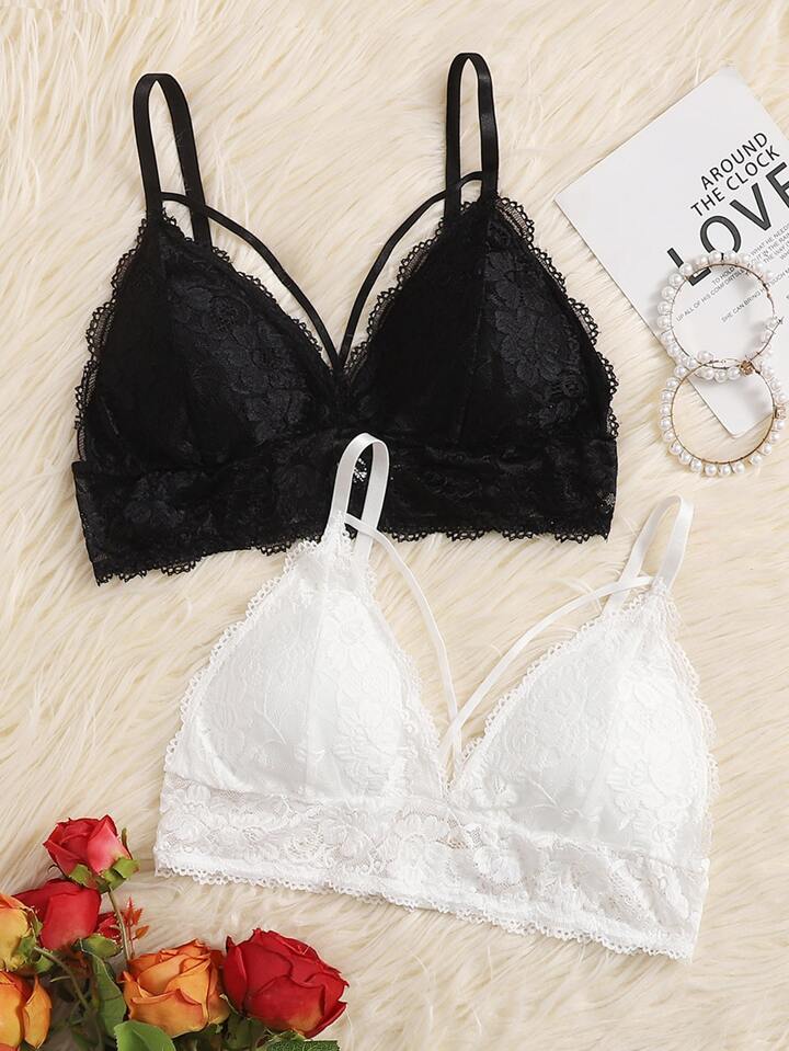 2 Packungen Blumen Spitzen Dreieckiger BH Set
