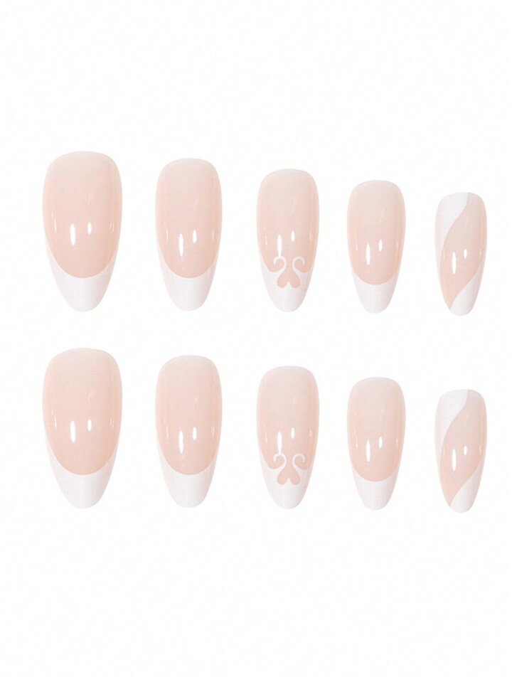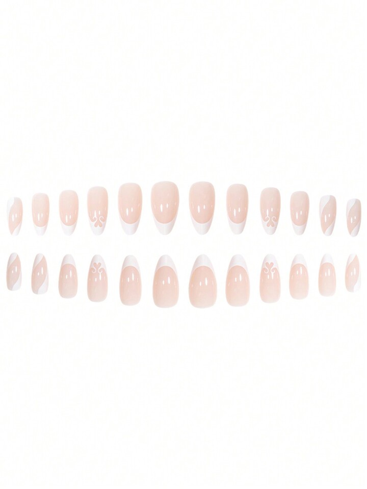 24 Stücke Mandelförmige Nägel Mit Weißem Rand Und Form Der French Linie, Abnehmbares Maniküre Set Mit Vollem Überzug