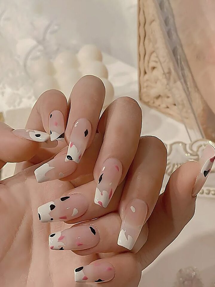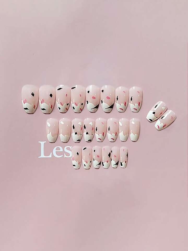 24 Stücke Künstliche Nägel mit Kuh Muster