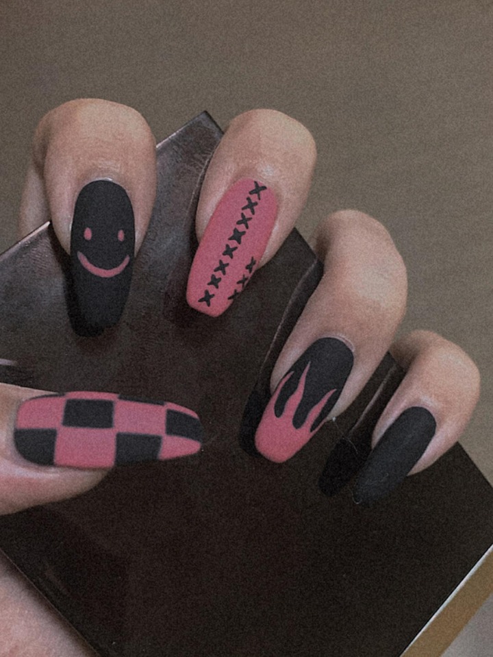 24 Stücke Kunstnägel mit Feuer Muster