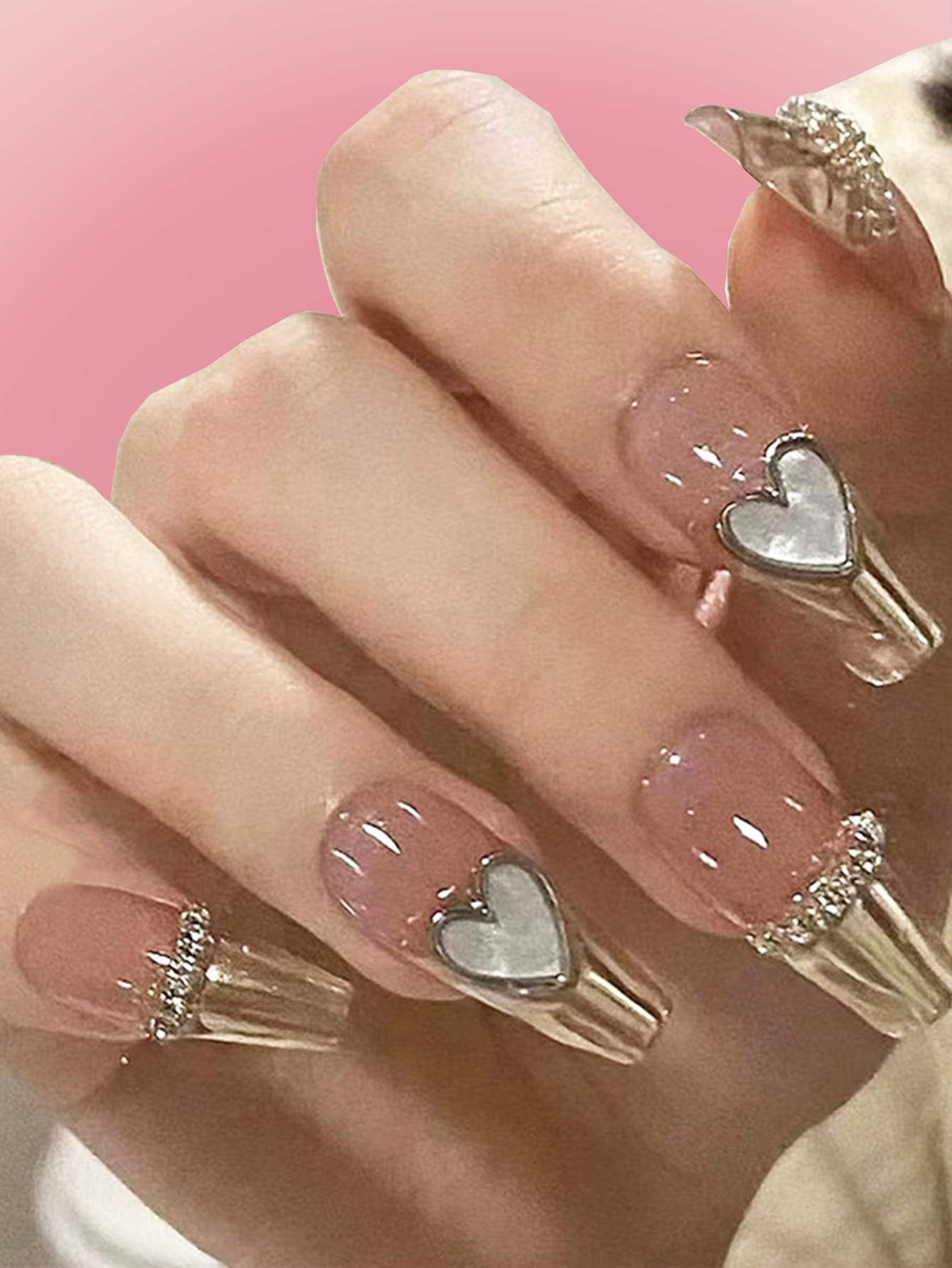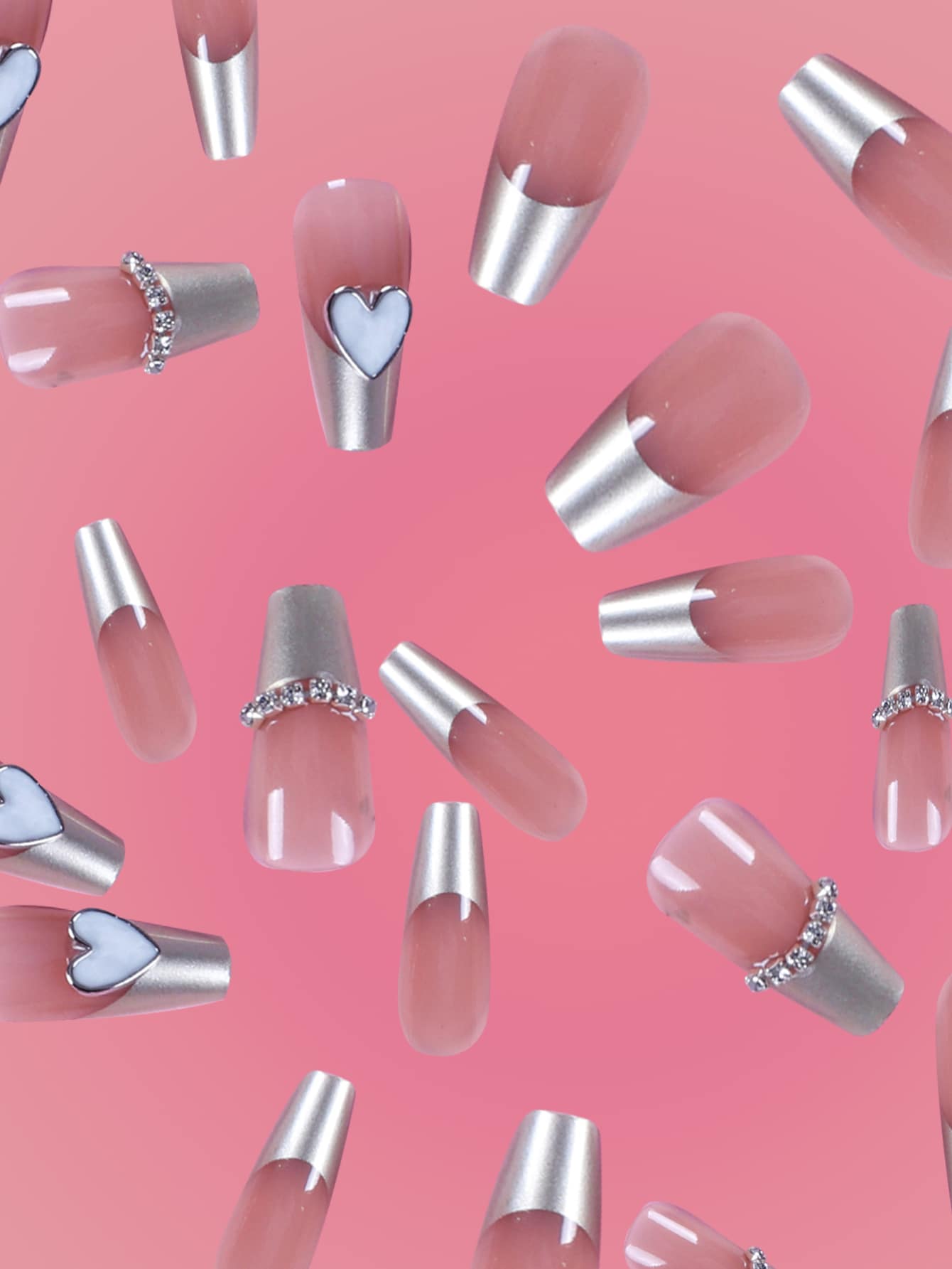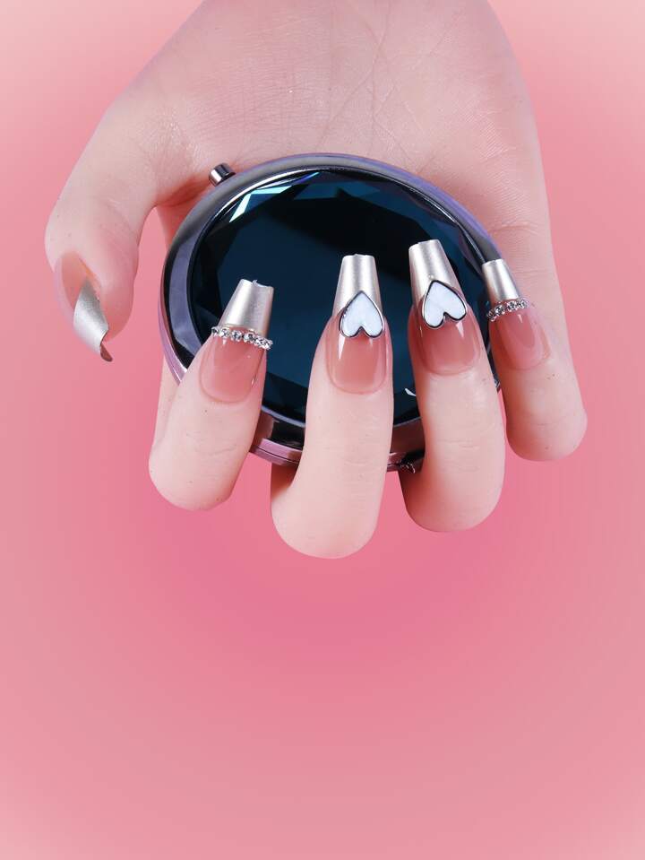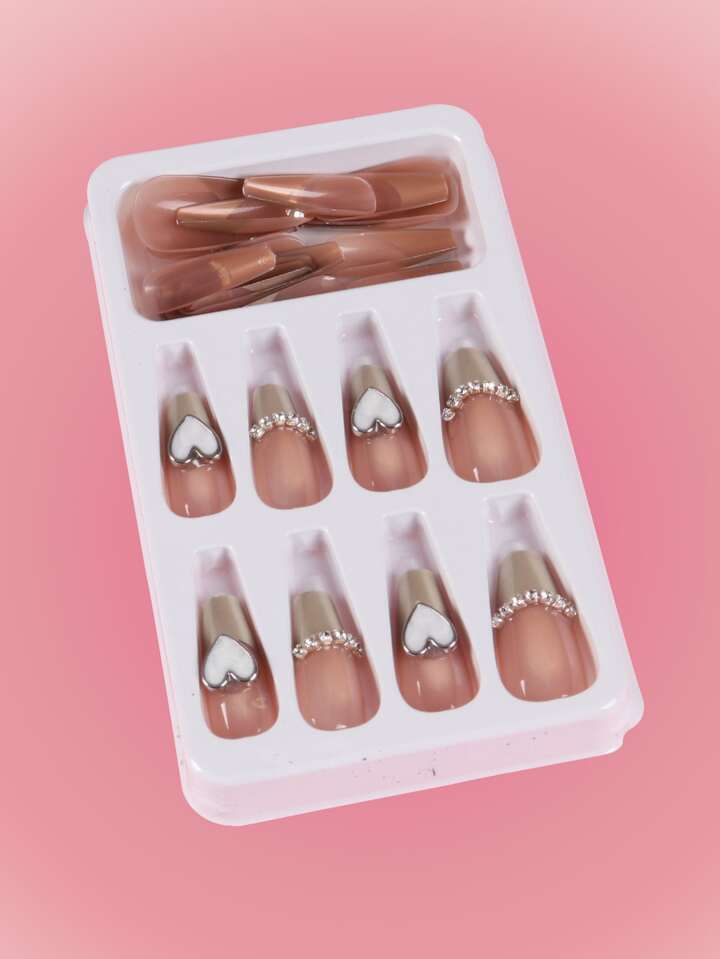 24 Stücke Lang Sarg Kunstnägel mit Strass Dekor & 1 Blatt Band