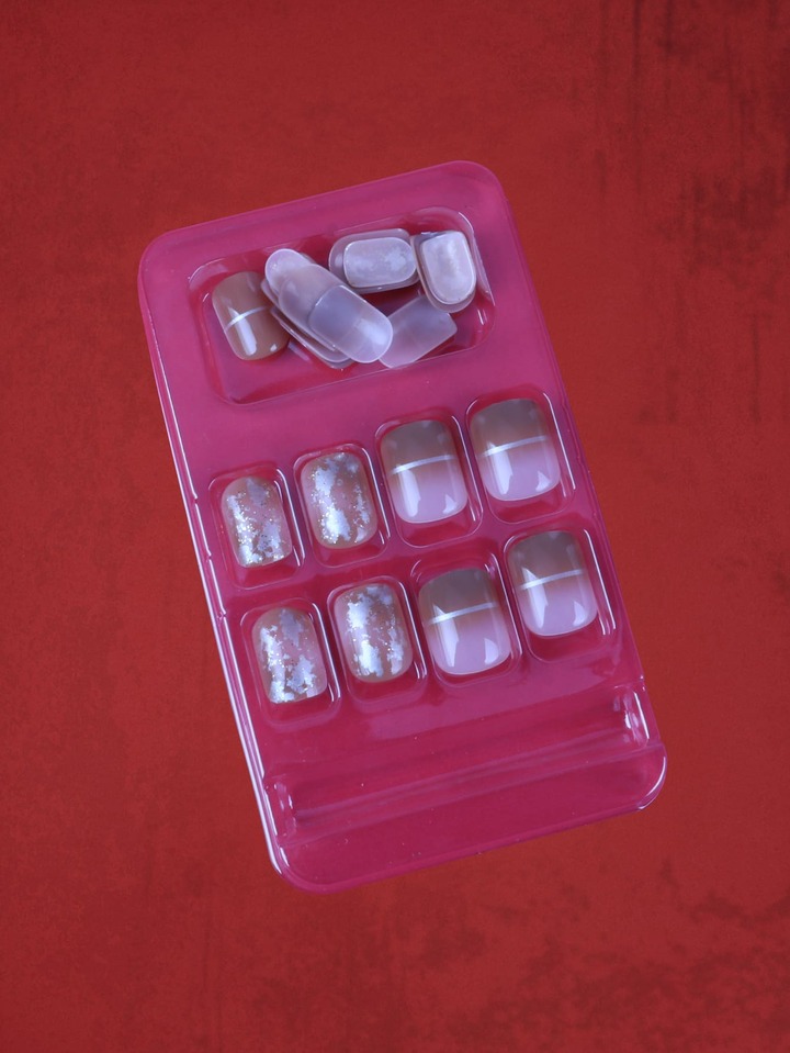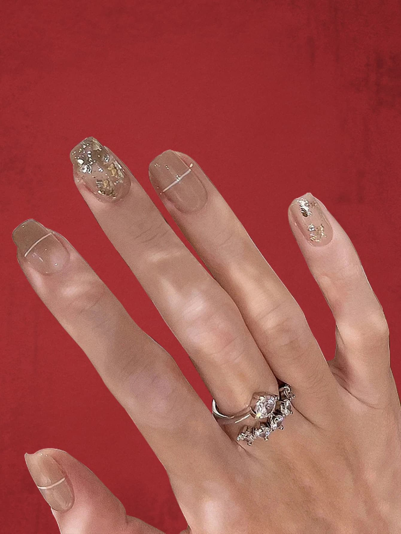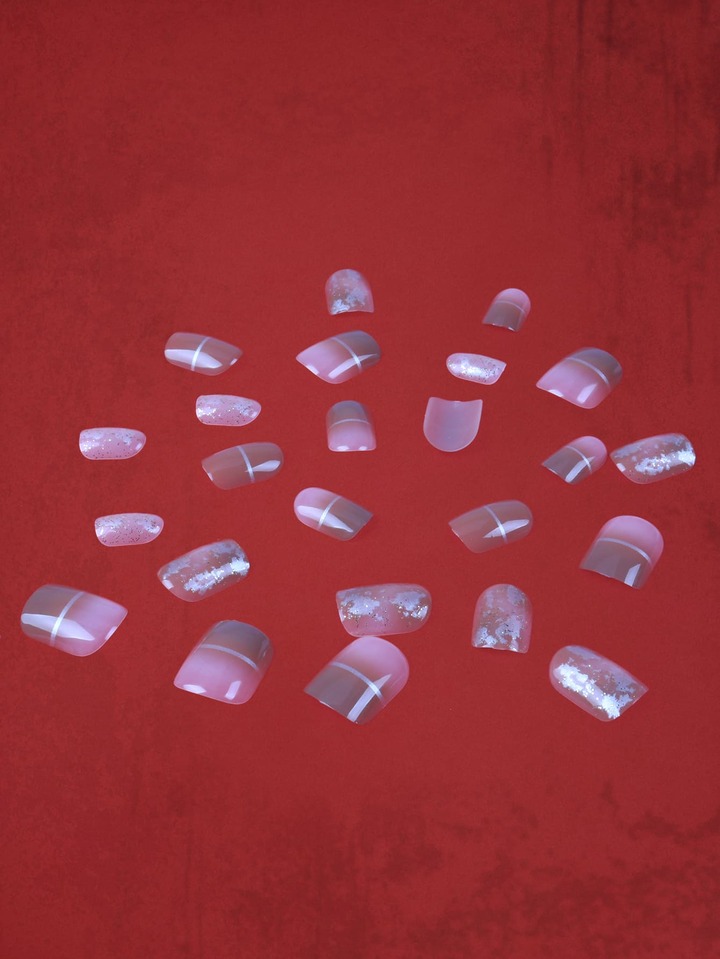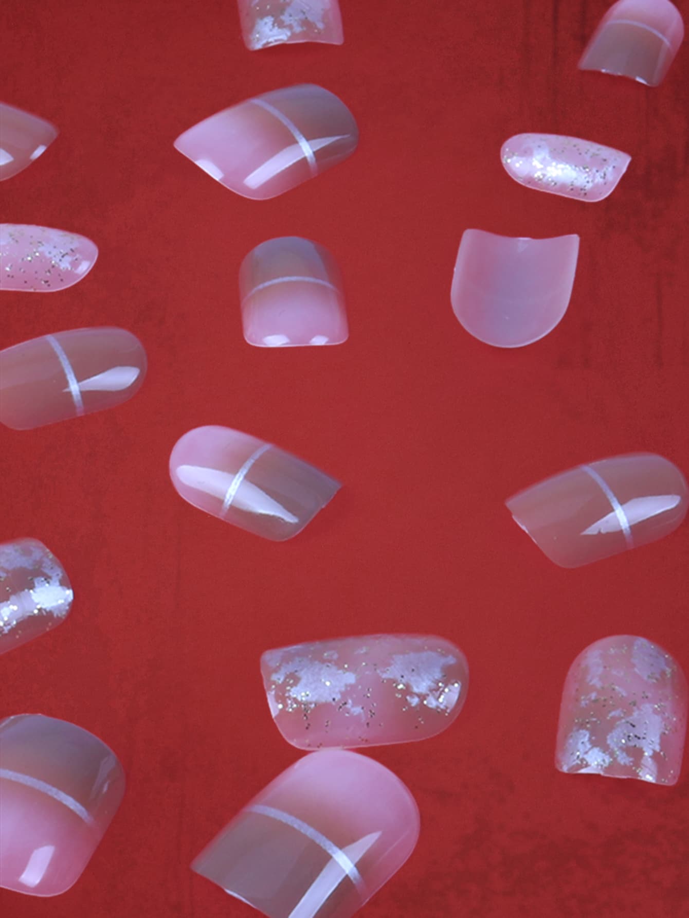 24 Stücke Kurz Sarg Kunstnägel mit Glitzer & 1 Blatt Band