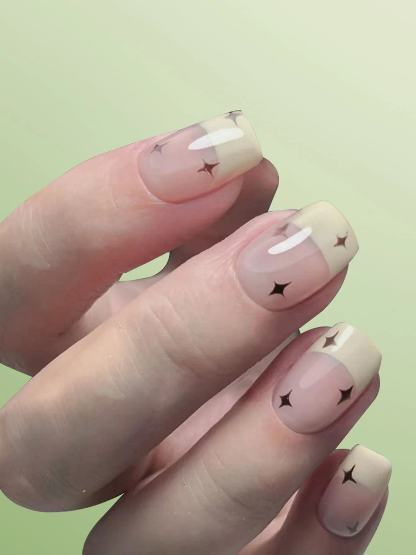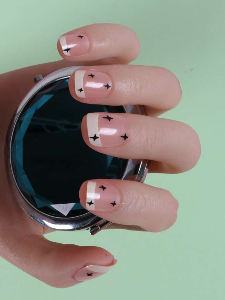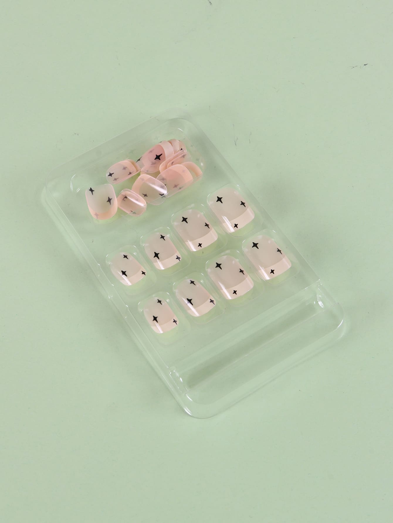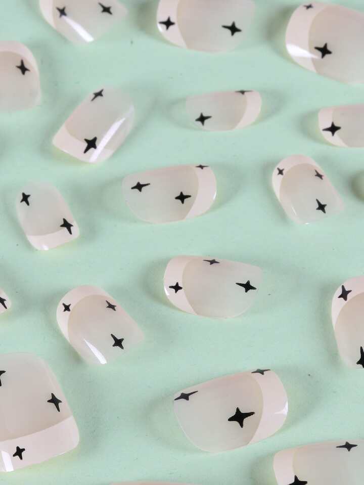 24 Stücke Kurz Quadrat, Stern Muster, Kunstnägel & 1 Blatt Band