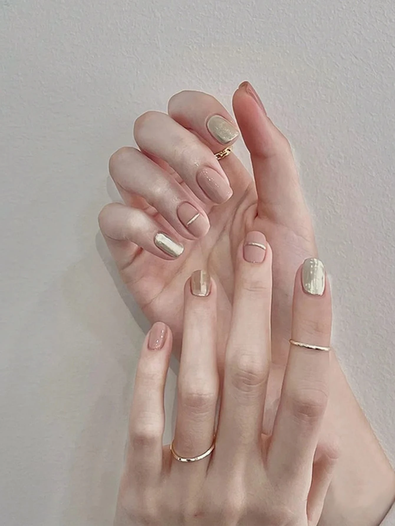 24 Stücke Kurz Quadrat, Streifen, Kunstnägel mit & 1 Stück Nagelfeile & 1 Blatt Band,