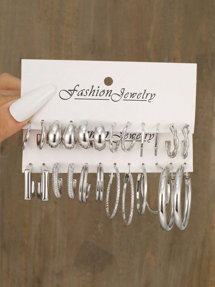 24 Stücke/Set Ohrringe einfach Metall geometrisch für Damen Urlaub , Dating , Täglich Mix And Match