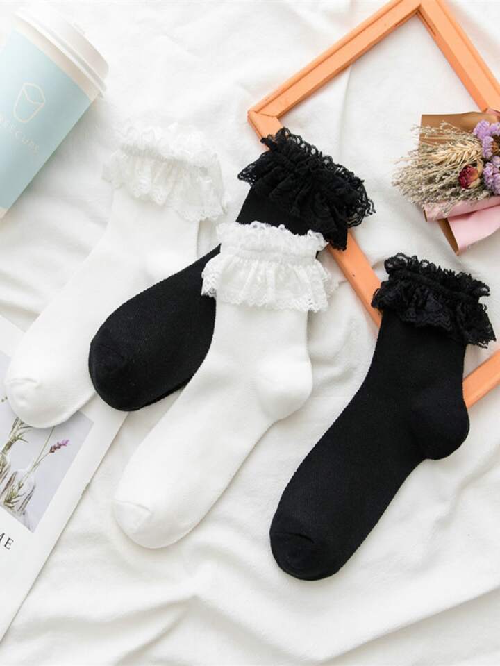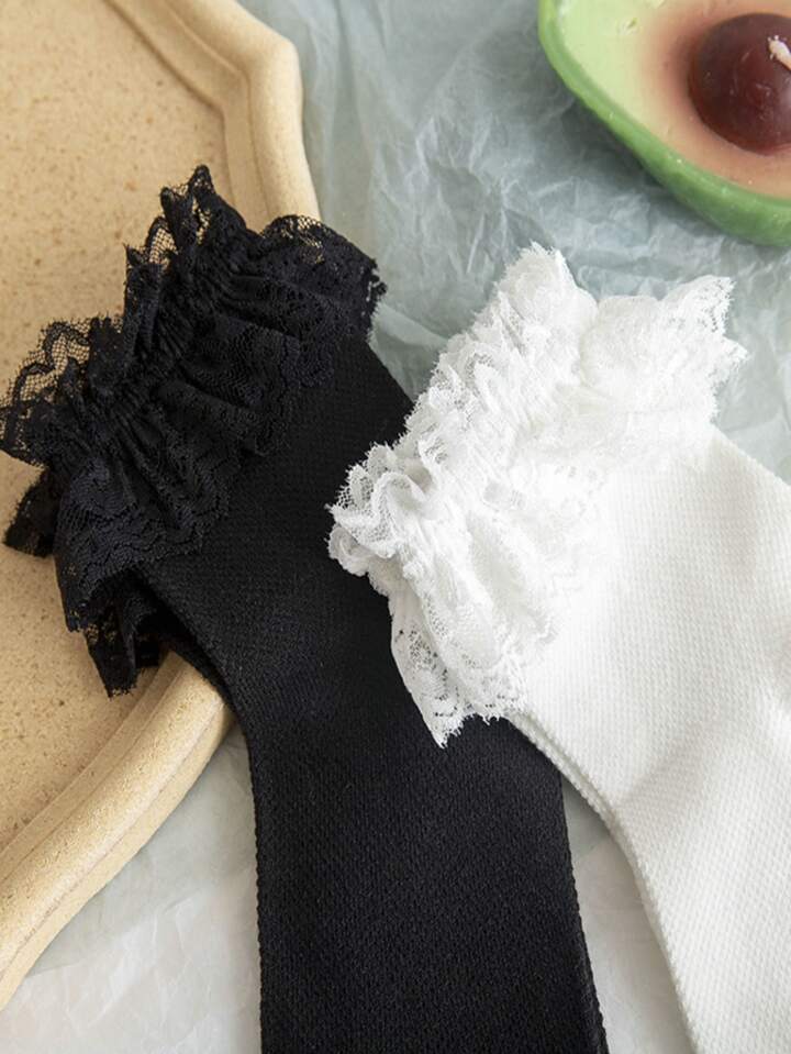 2 Paar Crew-Socken mit Spitzenbesatz