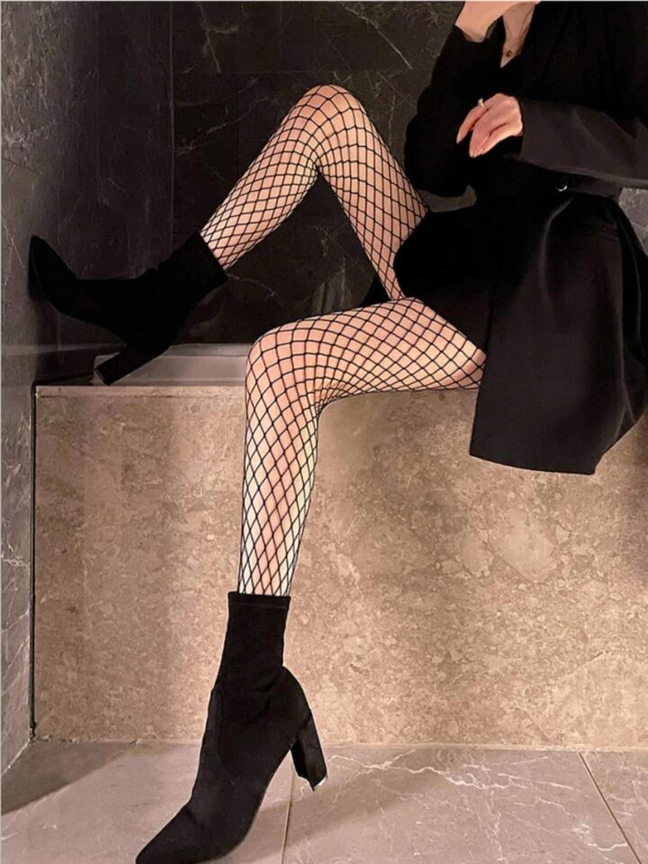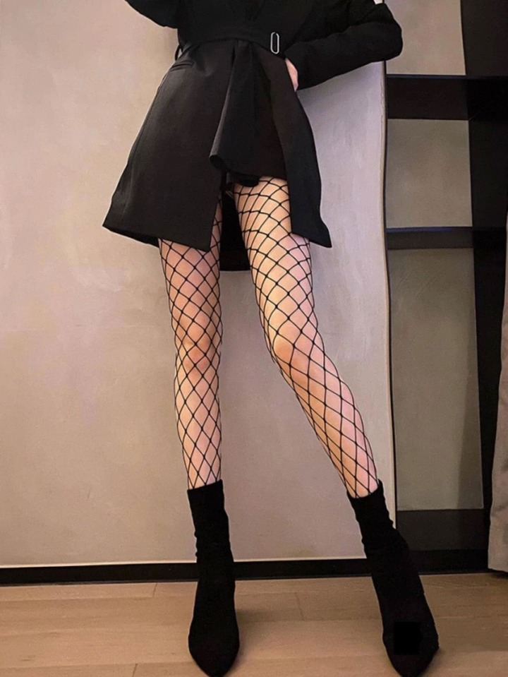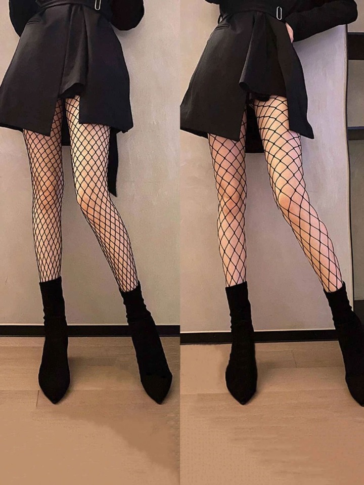 2 Paar Einfarbige Fischnetzstrumpfhose