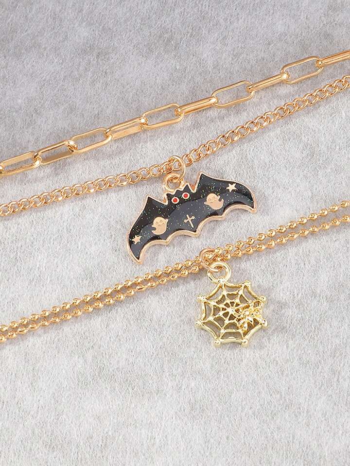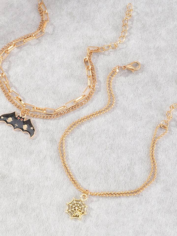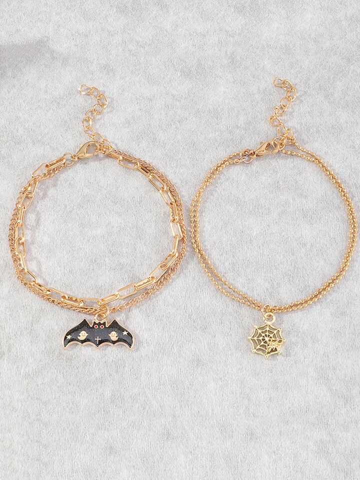 2 Stücke Armband mit Fledermaus & Spinnennetz Anhänger