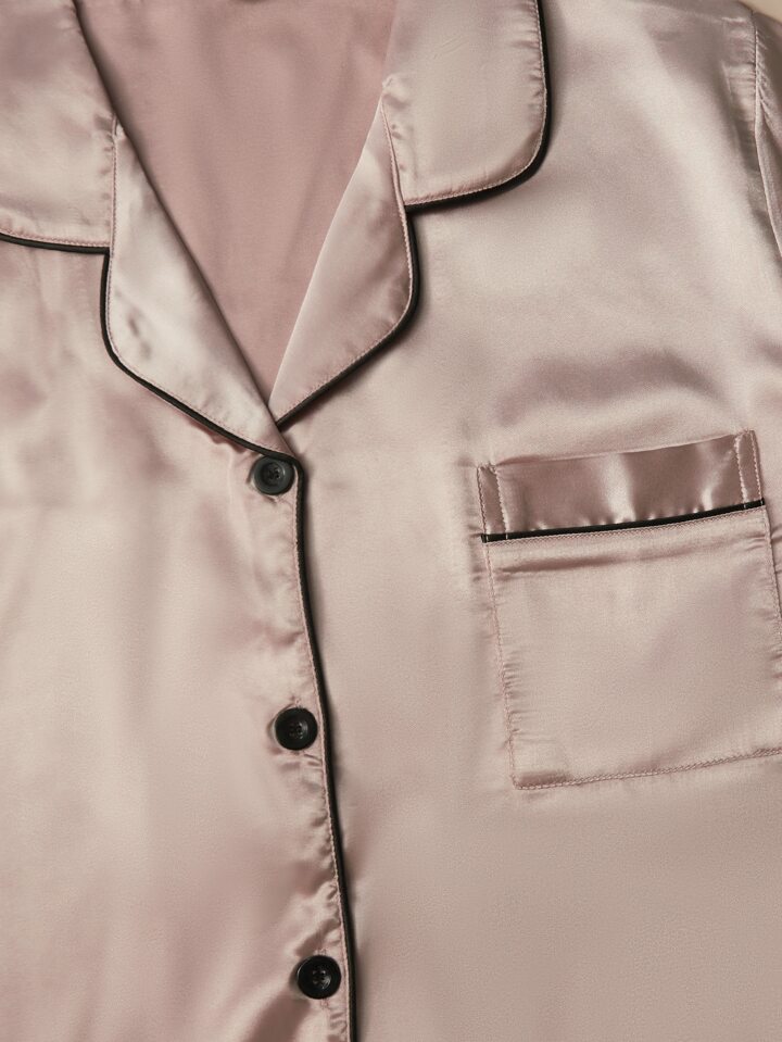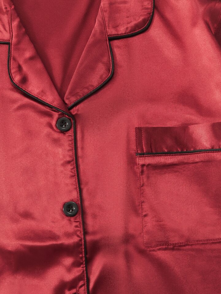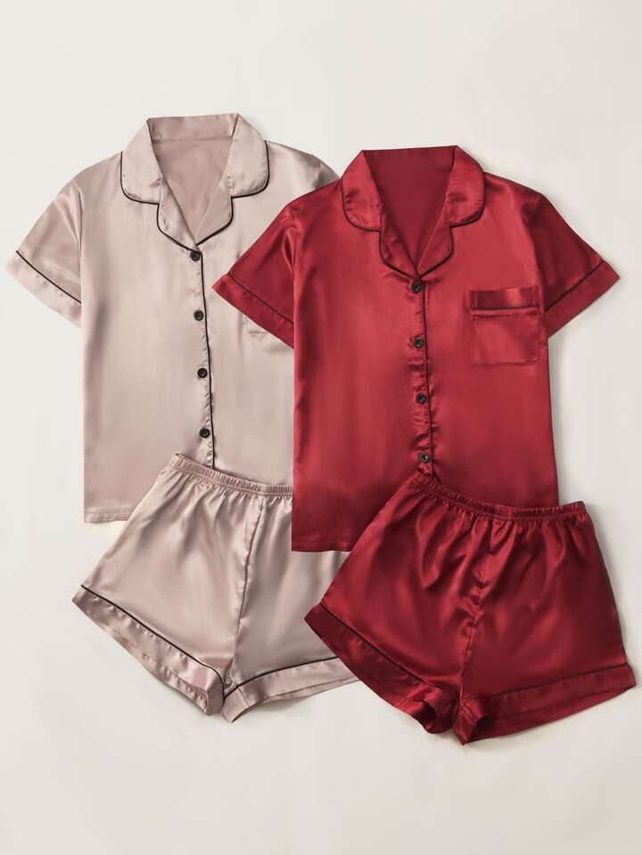 2 Stücke Satin Schlaftop mit Kontrast Paspel & 2 Stücke Schlafshorts