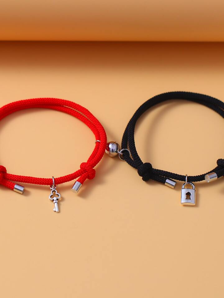 2 Stücke Pärchen Armband mit Schloss & Schlüssel Anhänger