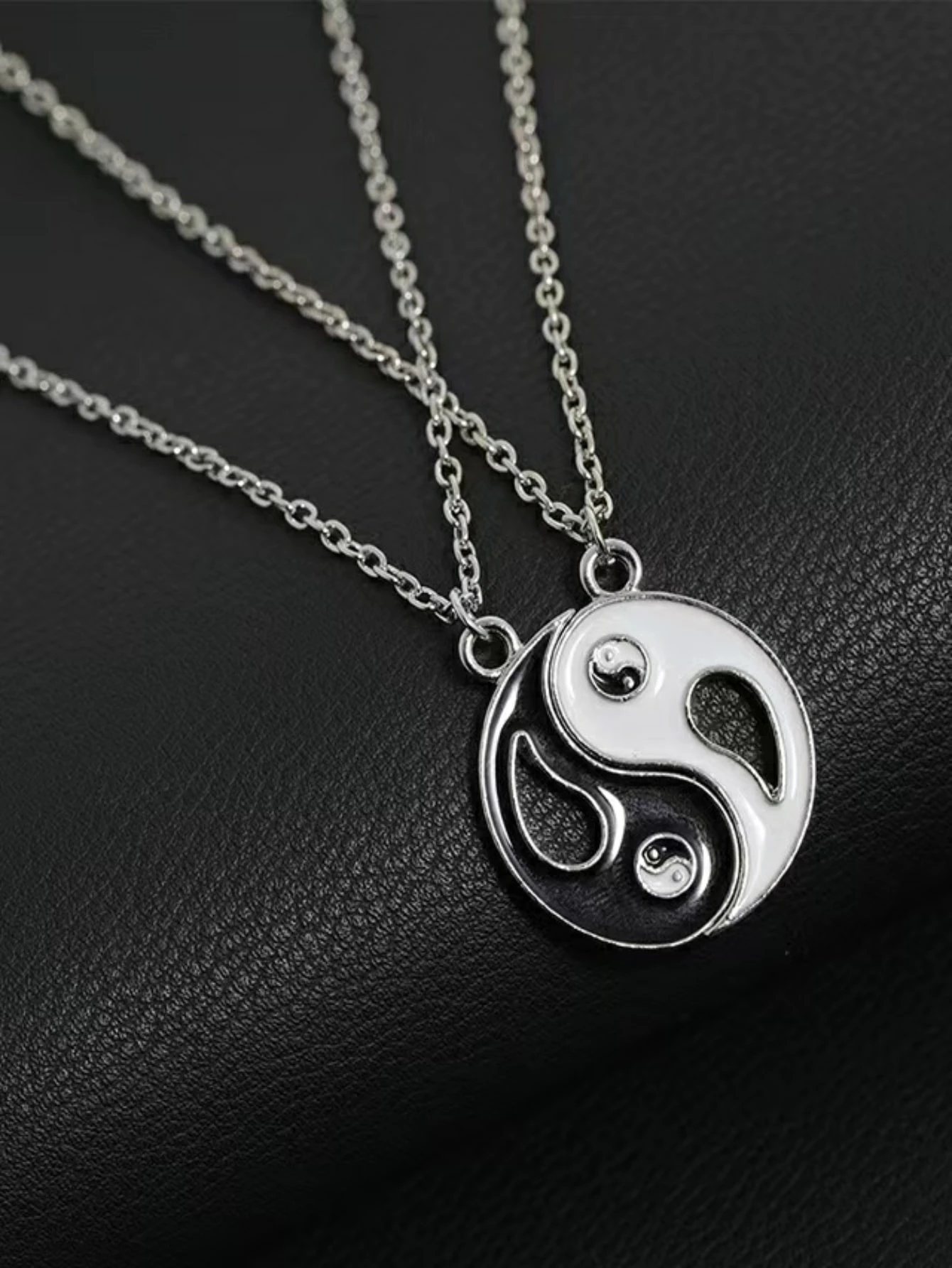 2 Stücke Halskette mit Pärchen Yin & Yang Anhänger