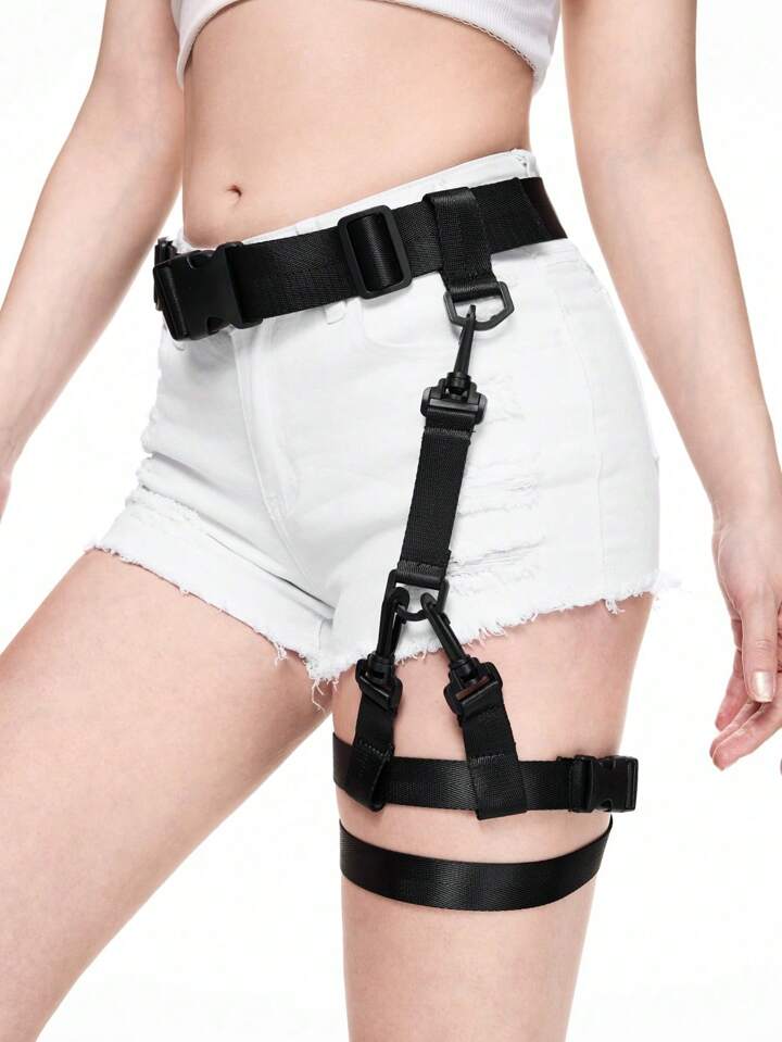 2 Stücke Set abnehmbare, einseitig umwickelbare Leinwand Beinmanschetten im mechanischen Stil mit Taillengurt